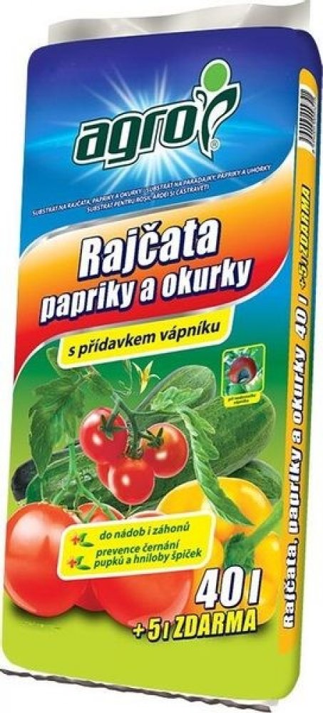 AGRO Substrát pro rajčata, papriky a okurky je směsí rašeliny a kvalitního vyzrálého kůrového humusu. Obsahuje dolomitický vápenec, základní živiny a stopové prvky. Používejte pro pěstování rajčat, paprik a okurek v nádobách i v záhonu (obohacení půdy substrátem).