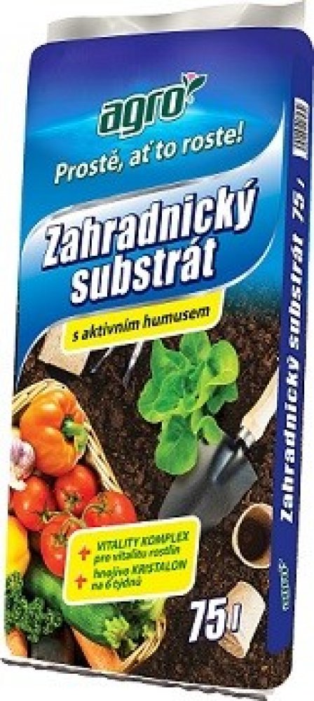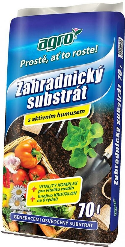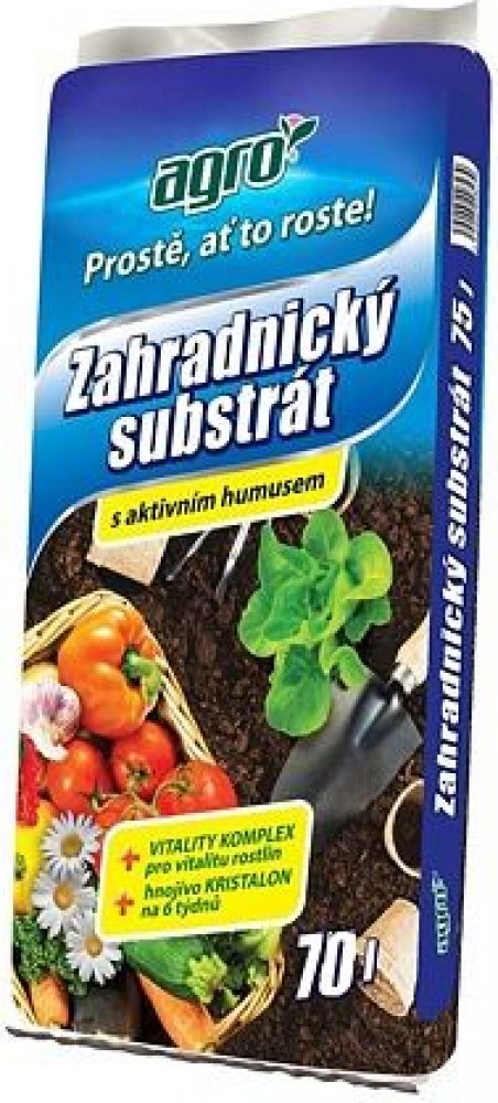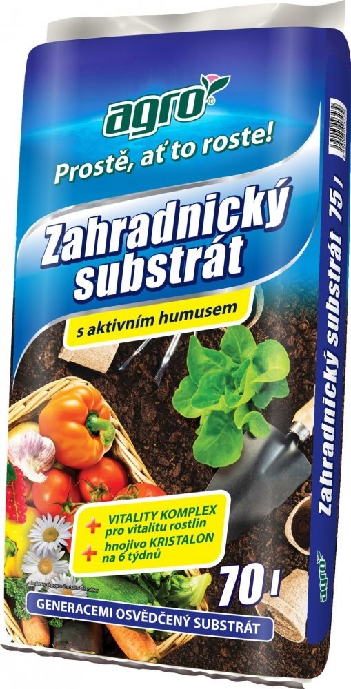 AGRO Zahradnický substrát je vynikající pro výsadbu a pěstování květin, zeleniny, okrasných keřů, ovocných stromů i mobilní zeleně ve skleníku, v pařeništi, na z...