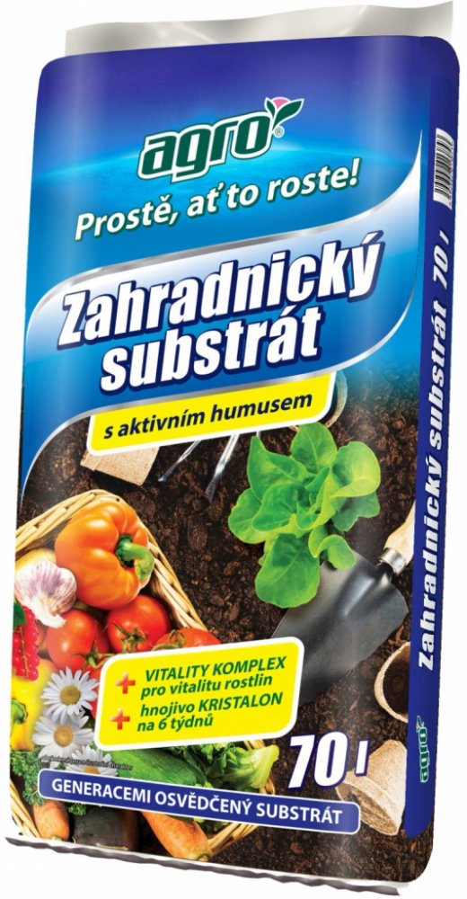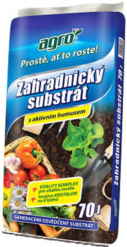 AGRO Zahradnický substrát je vynikající pro výsadbu a pěstování květin, zeleniny, okrasných keřů, ovocných stromů i mobilní zeleně ve skleníku, v pařeništi, na záhoně, zahradě a v mobilních kontejnerech.