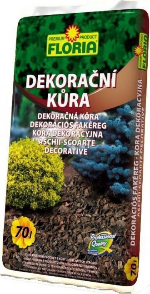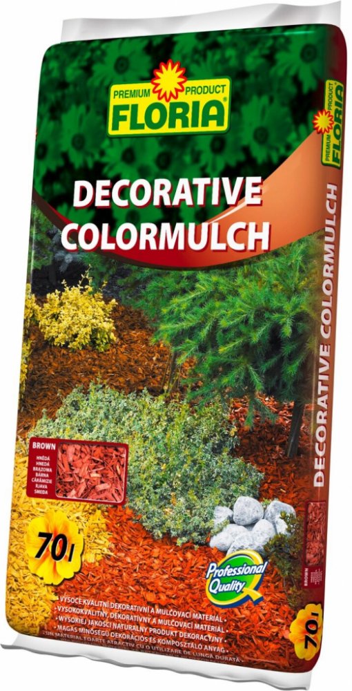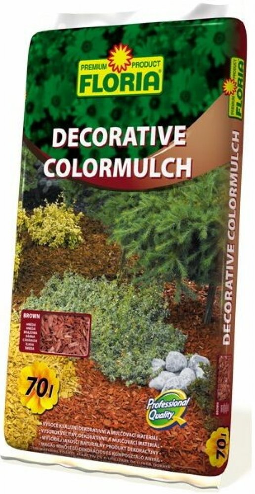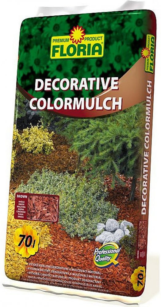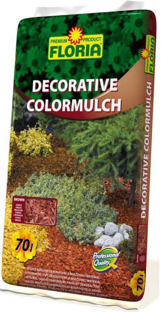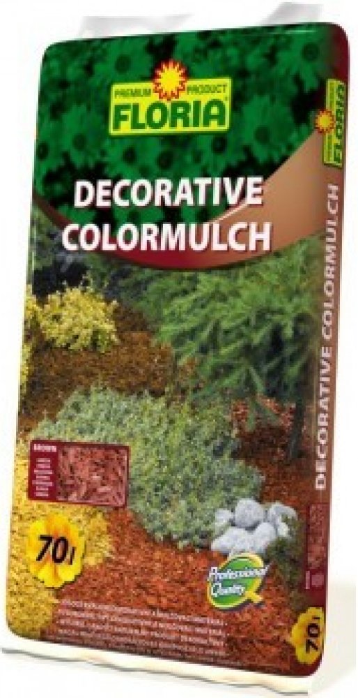 FLORIA Decorative ColorMulch je vysoce dekorativní a mulčovací materiál vyrobený z odkorněného dřeva jehličnanů. Vyniká dlouhou životností na záhonech. Vyrábí se ve čtyřech odstínech - hnědá, cihlová, oranžová a žlutá. Použité barvy jsou vyrobeny z přírodních pigmentů a tudíž nejsou životnímu prostředí škodlivé. Kromě okrasné funkce také zabraňuje vysychání půdy.