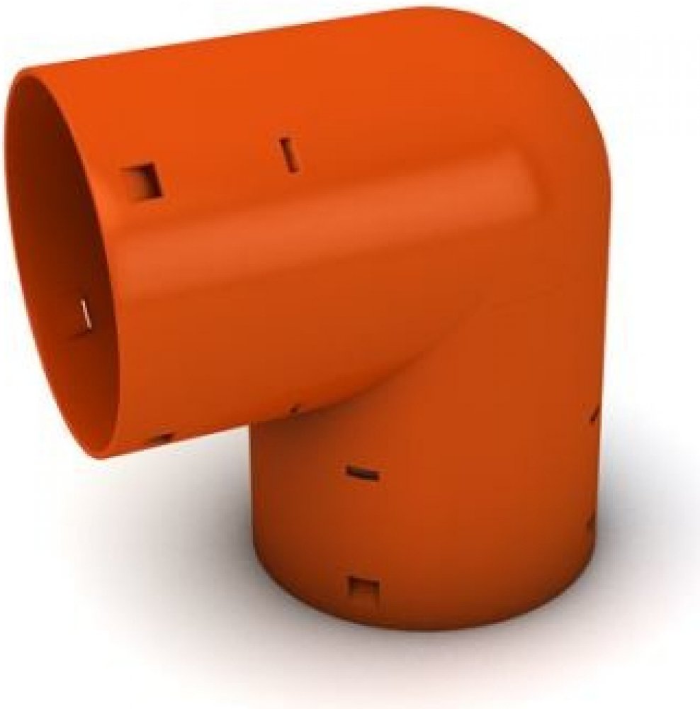 Drenážní koleno se používá v místech, kde je potřeba vytvořit ohyb drenážního potrubí pod úhlem 90° (pravý úhel). Drenážní hadice se zaústí do kolena, kde se zafixuje zarážkami. Drenážní koleno je možné použít pro všechny typy drenážních hadic DN 50.