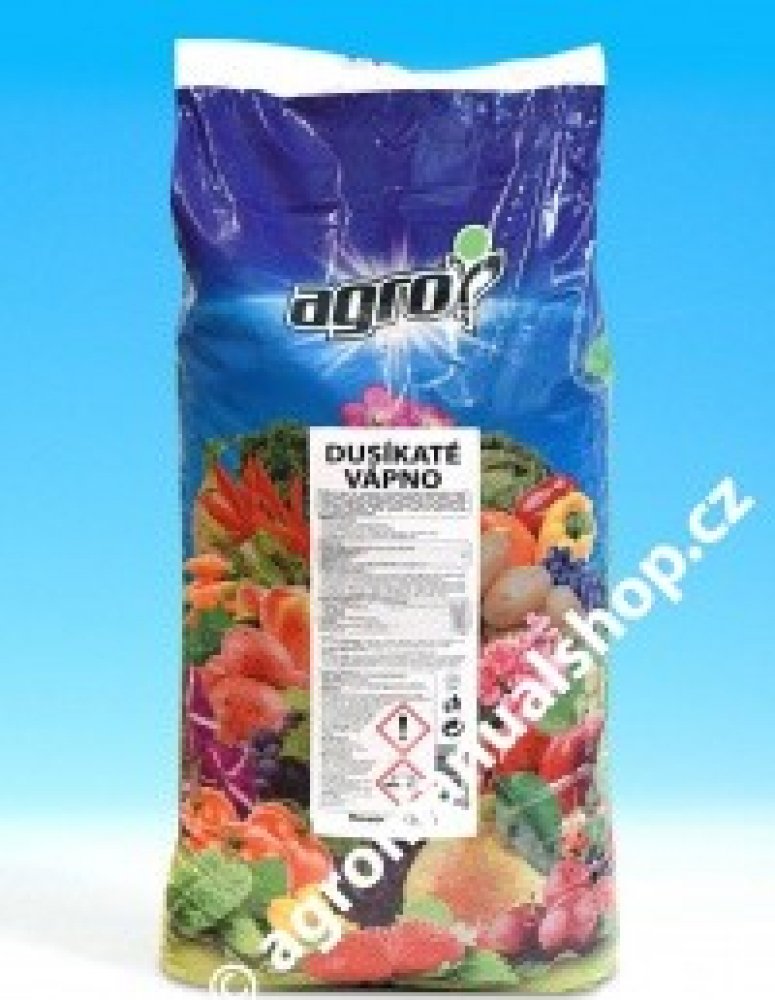Agro Dusíkaté vápno je dusíkaté hnojivo s obsahem dusíku pro nárůst zelené hmoty a obsahem vápníku, který snižuje kyselost půdy. Hnojivo díky svému složení desinfikuje půdu a tím ničí zárodky chorob, škůdců i semena plevelů. Hnojivo doporučujeme užívat hlavně při pěstování košťálové zeleniny, jelikož zabraňuje nádorovitosti této zeleniny. Hnojivo se používá k jarnímu i podzimnímu hnojení.