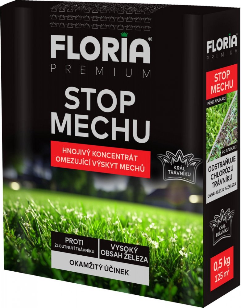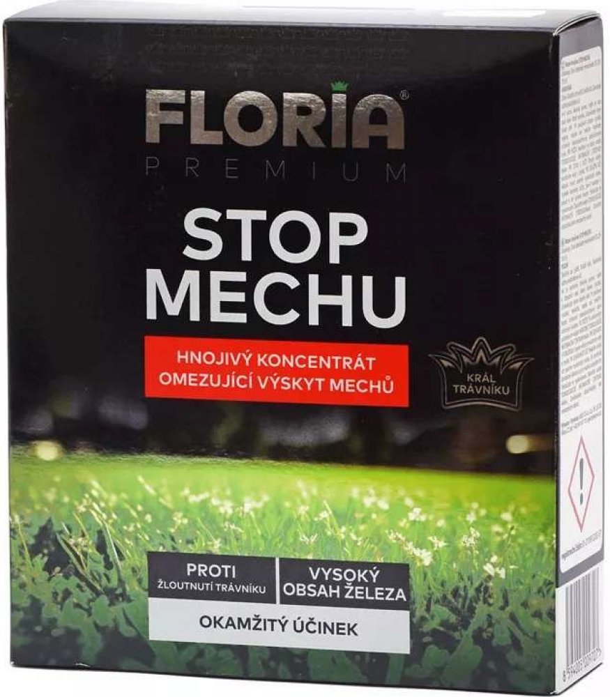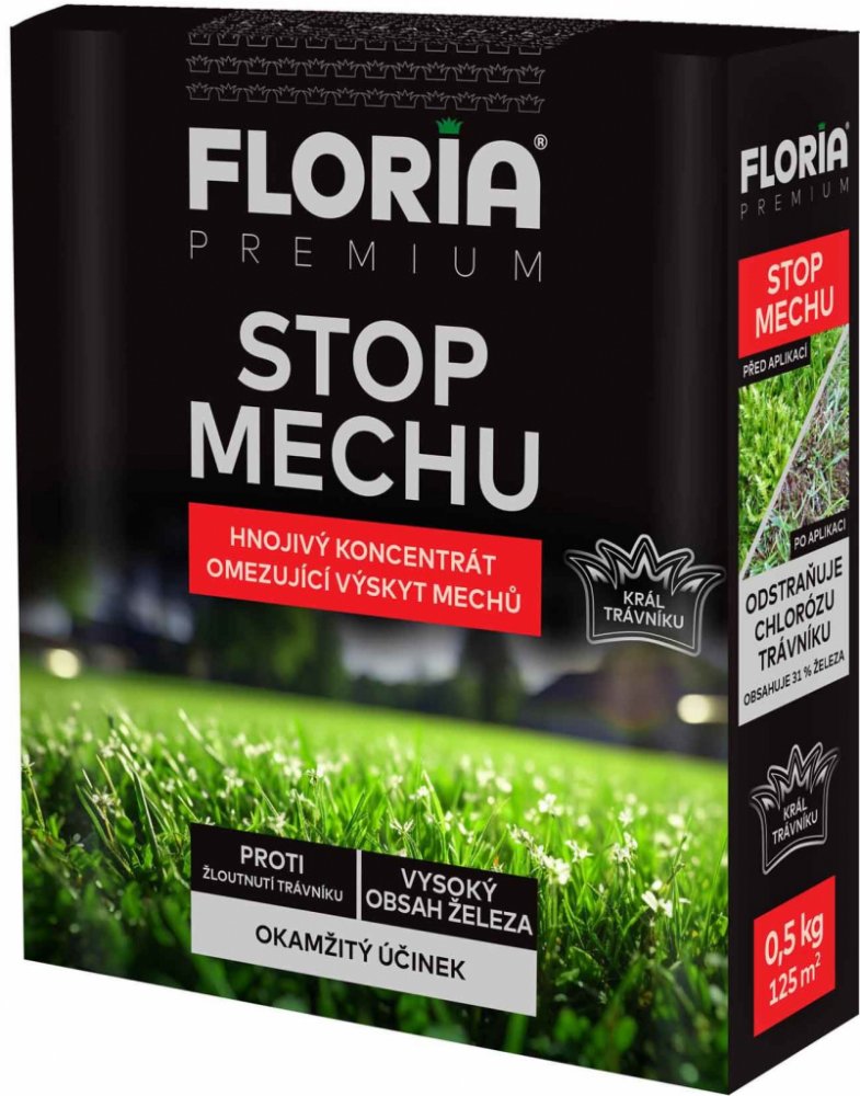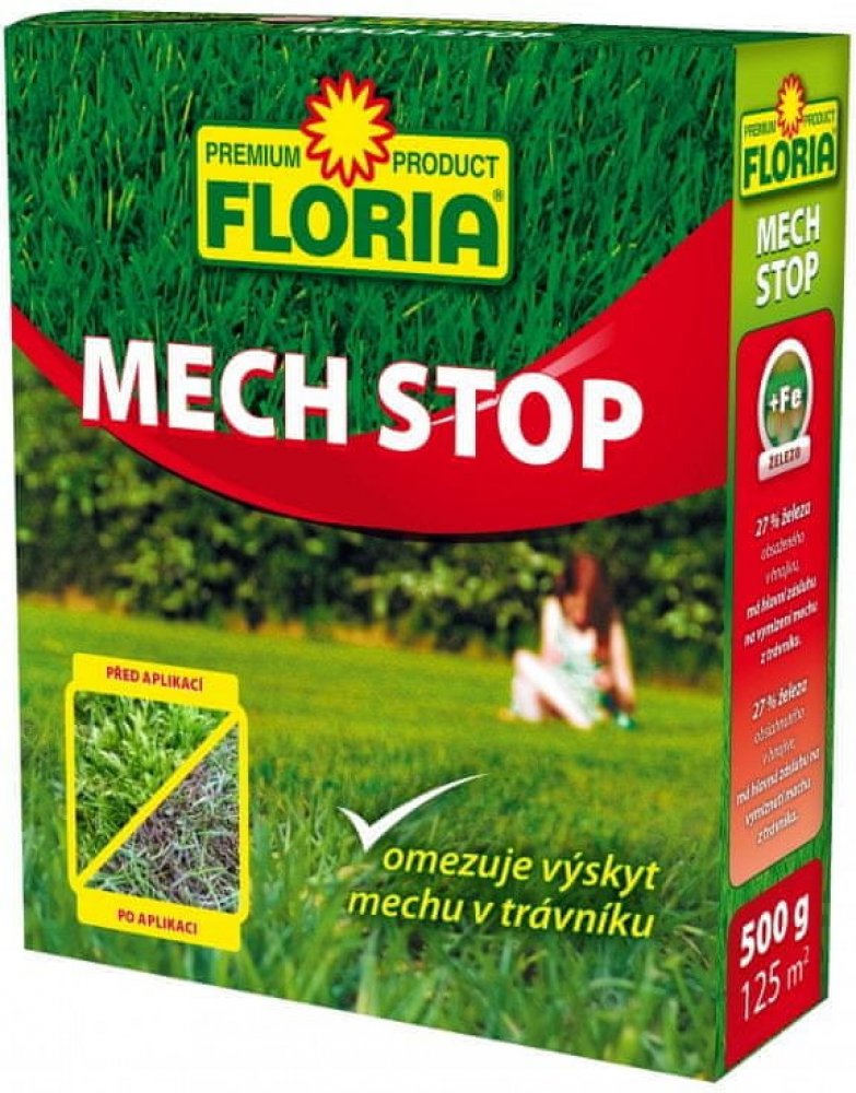 Mech funguje jako houba, která trávník dusí, drží v něm vlhkost a bere mu živiny. Pokud s ním bojujete, běžné hnojivo nepomůže – potřebujete tvrdý zásah. FLORIA PREMIUM STOP mechu je úzce specializovaný práškový koncentrát, který díky extrémnímu obsahu železa (27 %) mech doslova spálí.