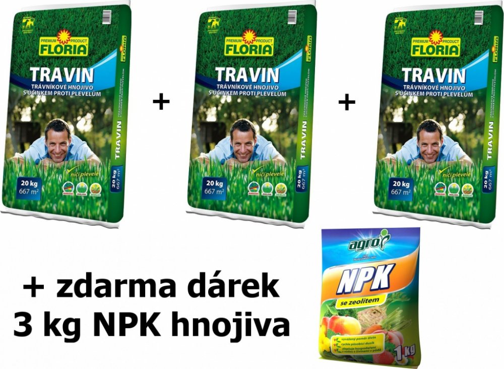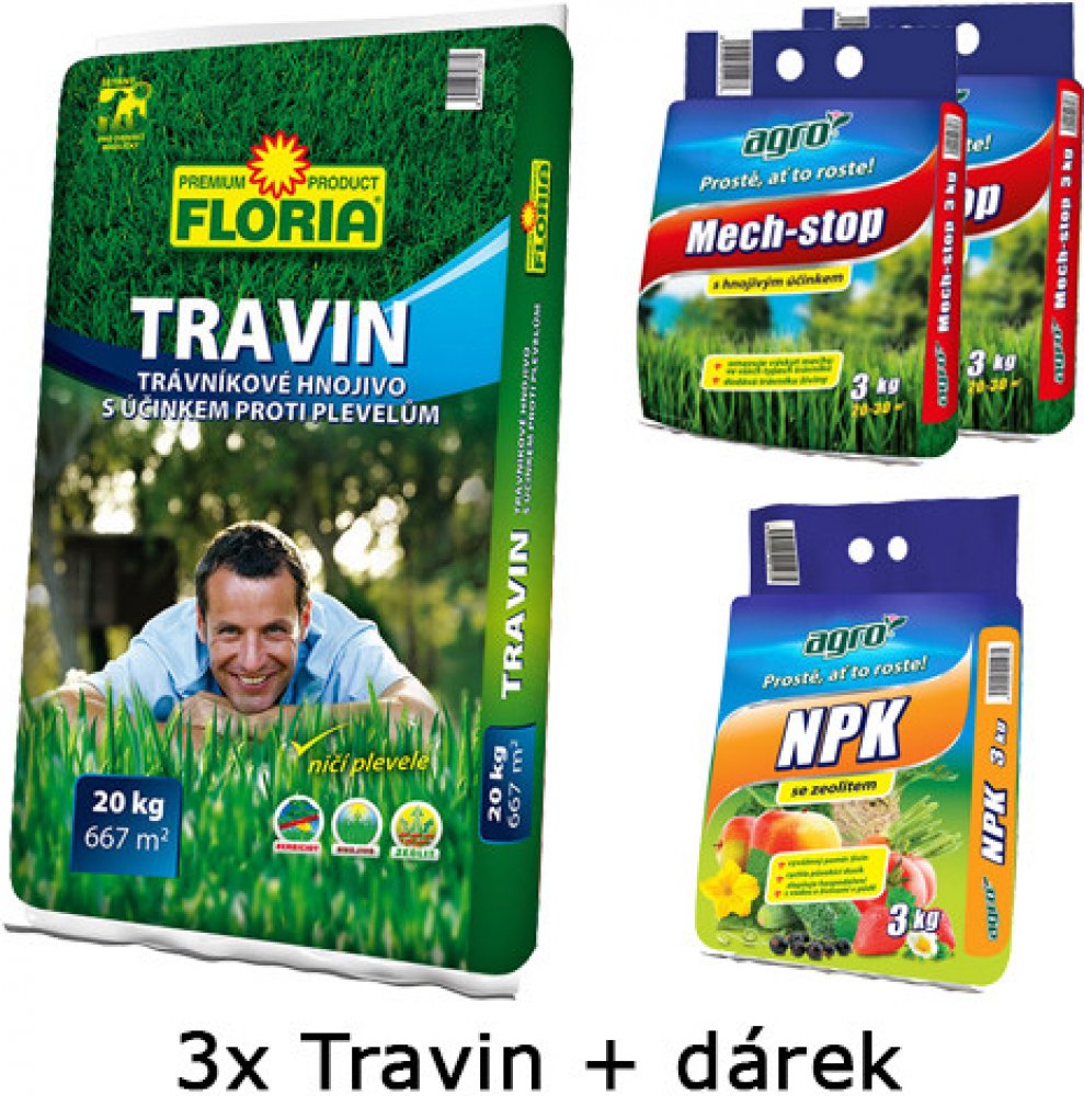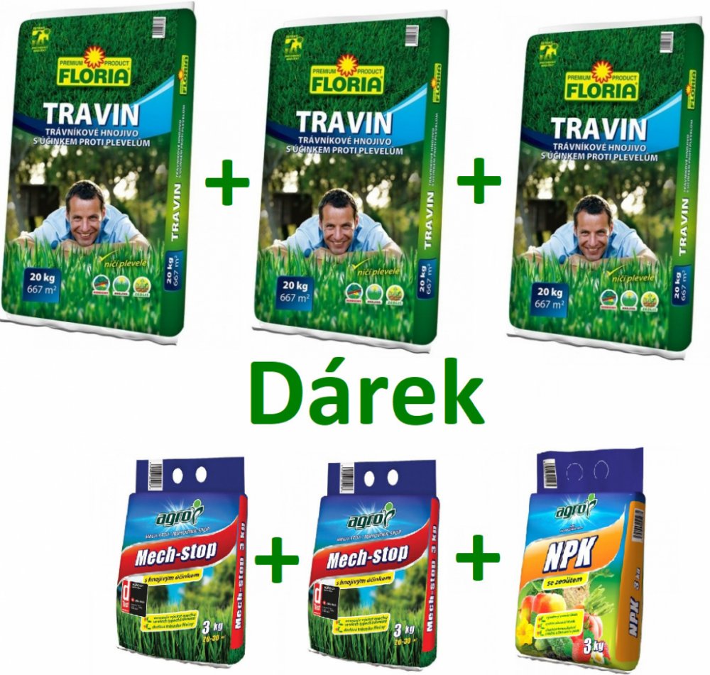 ZVÝHODNĚNÉ BALENÍ: 3x20 kg Travin+dárek ZDARMA Mech stop 6 kg+NPK 3 kg