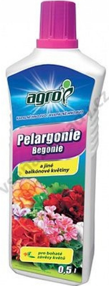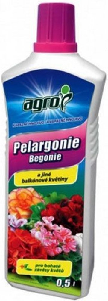 AGRO PELARGONIE BEGONIE je kapalné hnojivo vhodné pro pelargonie, begonie a jiné balkónové květiny. Je vynikajícím prostředkem k přihnojování muškátů a ostatních balkónových květin vysoce náročných na živiny (petunie, verbeny, begonie, fuchsie, bidens,…). Kombinace vhodně zvolených živin a stopových prvků dodá rostlinám dostatek síly k rychlému růstu a bohatému dlouhodobému kvetení. Obsah fosforu prodlužuje dobu květu a stimuluje vývoj poupat.