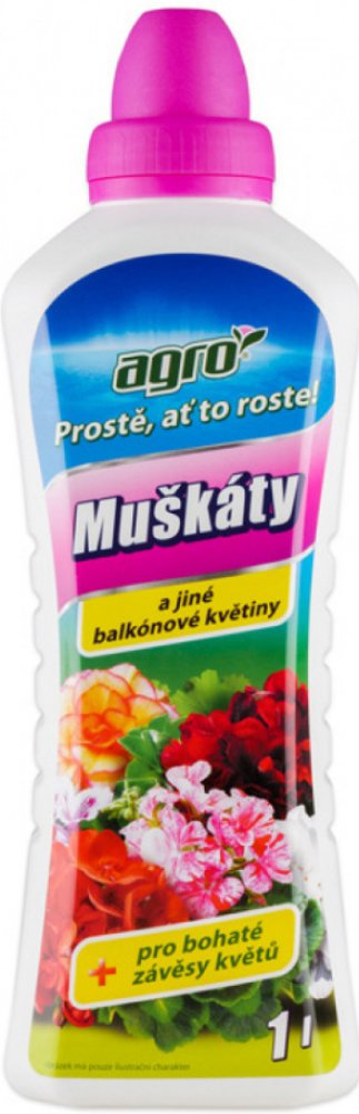 Agro kapalná 0.6 kg 0.5 l vícesložková pro balkonové rostliny NPK minerální pro růst i květ pro muškáty kořenová zálivka kapalný koncentrát 7.5 ml/l balkon a terasa jednoduché — přidej a zalij bez specifikace