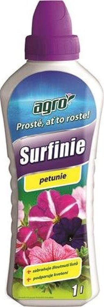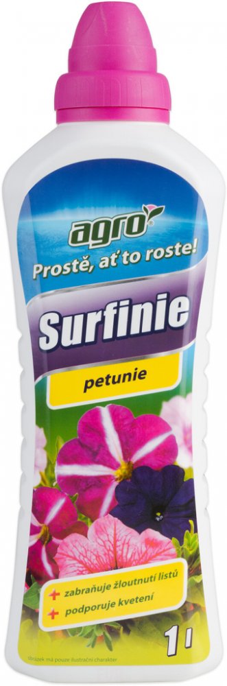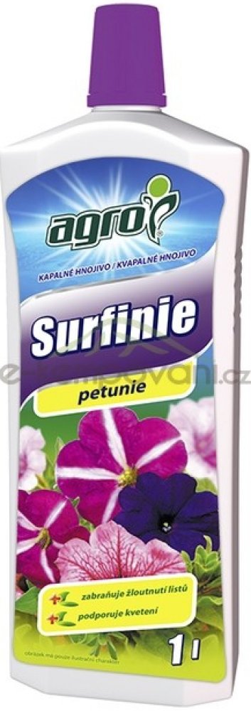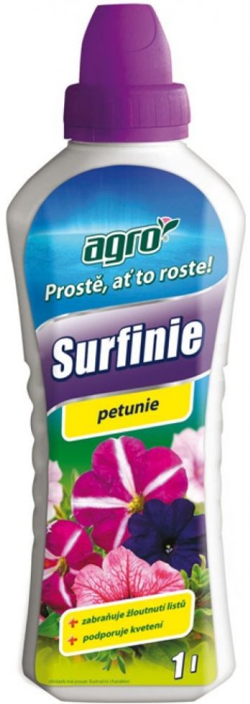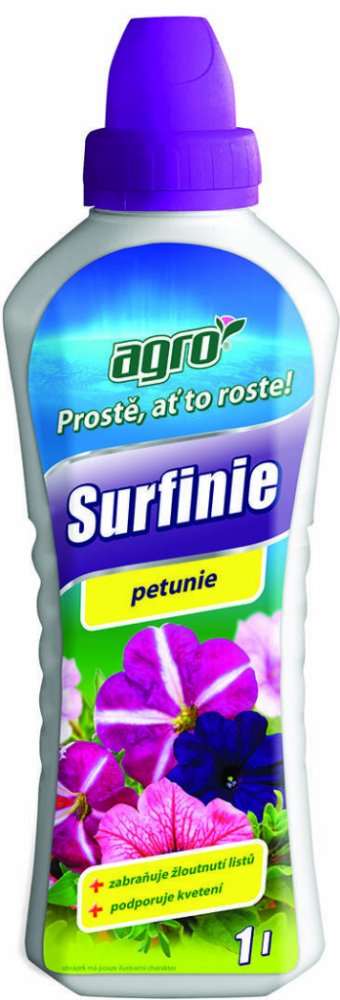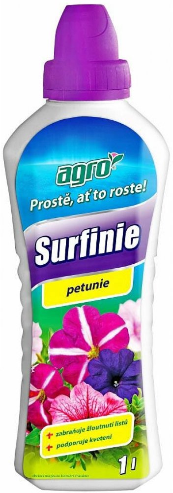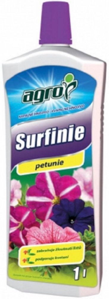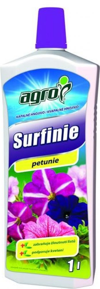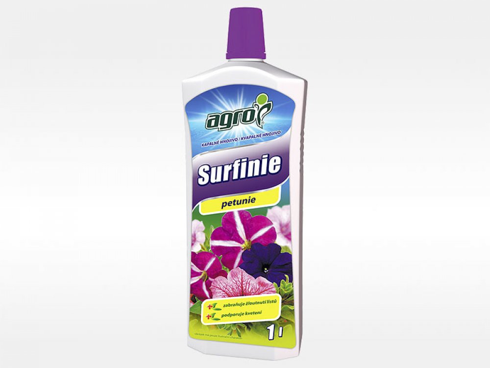 Agro SURFINIE je minerální kapalné hnojivo podporující vyváženou výživu surfinií a petunií. Díky vyššímu obsahu železa zabraňuje chloróze (žloutnutí listů), ke které dochází nedostatkem nebo nadbytkem živin. Správným používáním tohoto přípravku zabráníte výskytu této fyziologické nemoci.