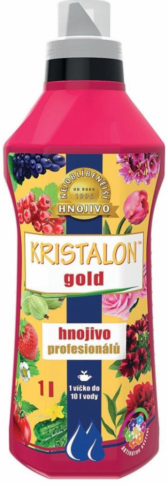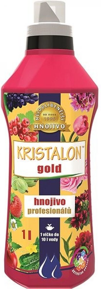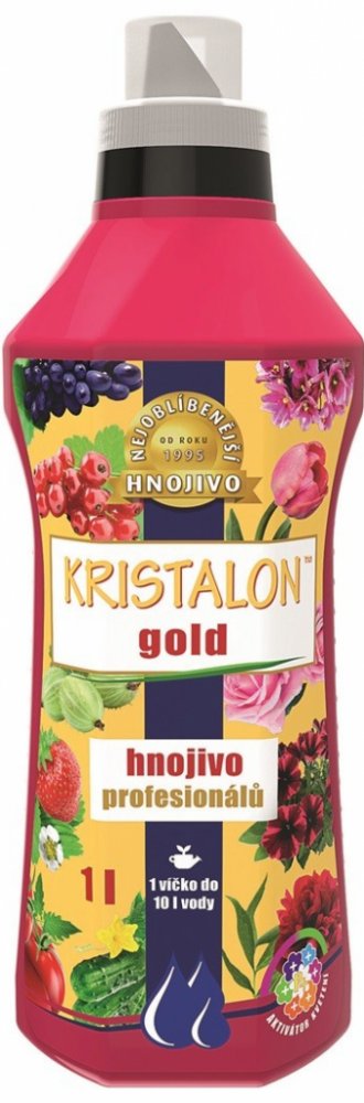 KRISTALON Kapalné krystalické hnojivo Gold je unikátní produkt z řady hnojiv KRISTALON, který vyniká obsahem tzv. aktivátoru kvetení - speciální formy fosforu, jež je pro rostliny lépe dostupná a účinnější. Díky tomu podporuje intenzivní kvetení, bohatší nárůst kořenů a zajišťuje sytější zelenou barvu listů. Hnojivo je vhodné nejen pro širokou škálu zeleniny (rajčata, papriky, okurky atd.) a drobn...