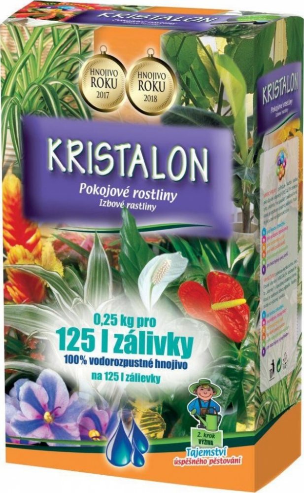 Agro krystalická 0.25 kg 0 l vícesložková pro pokojové rostliny dusíkatá minerální pro trávu pro půdu kořenová zálivka suchý koncentrát 2.0 ml/l indoor pěstírna jednoduché — přidej a zalij bez specifikace