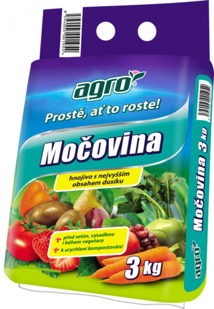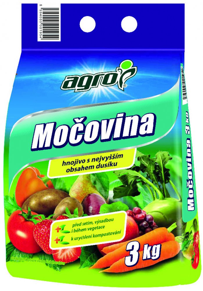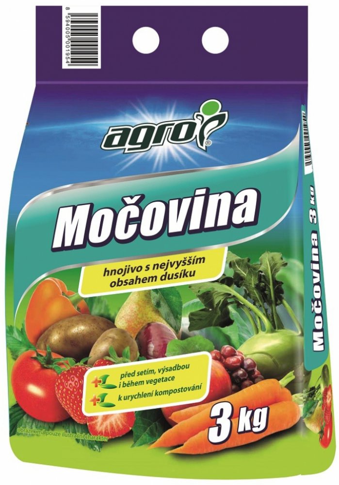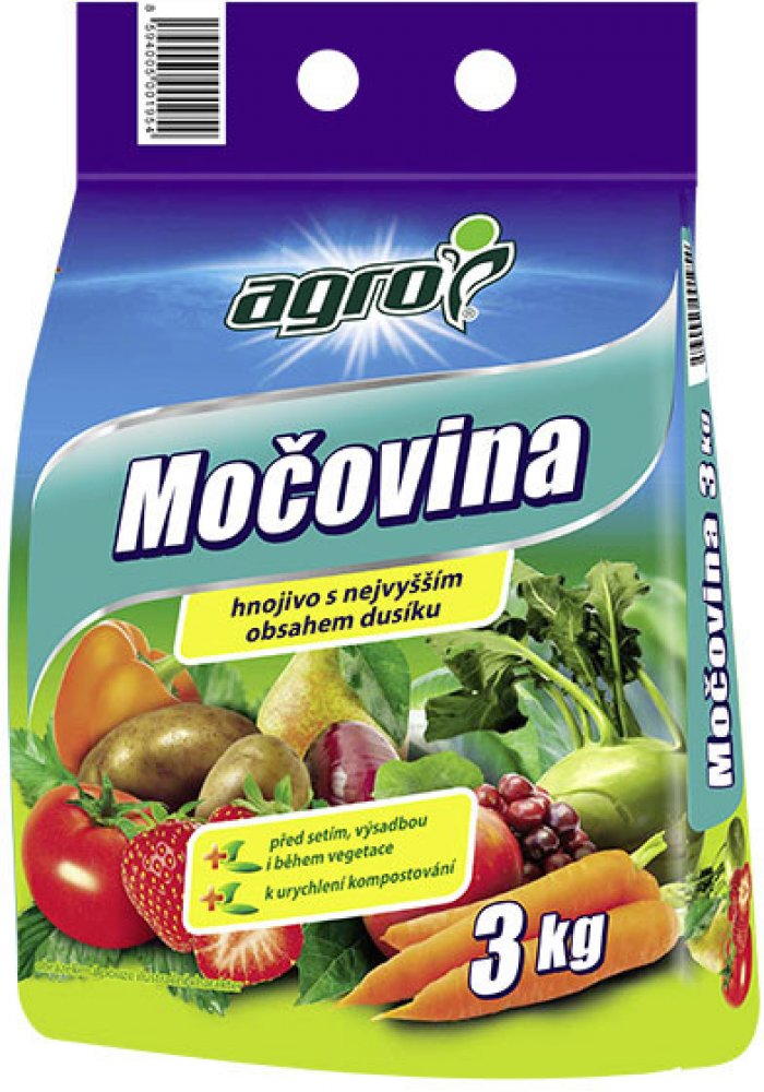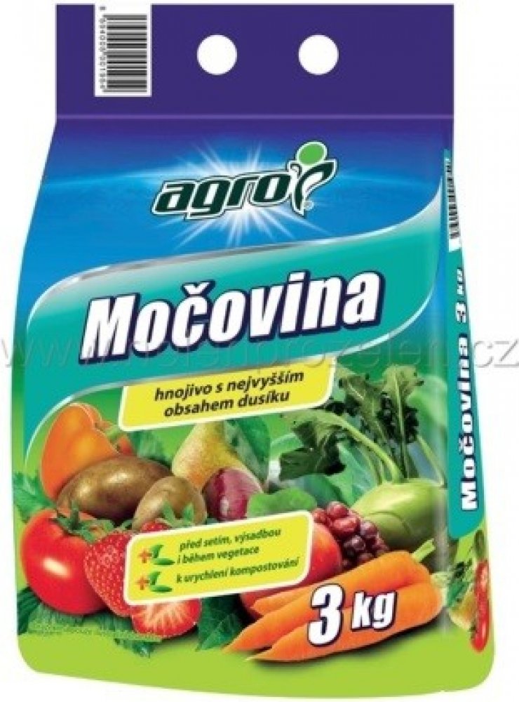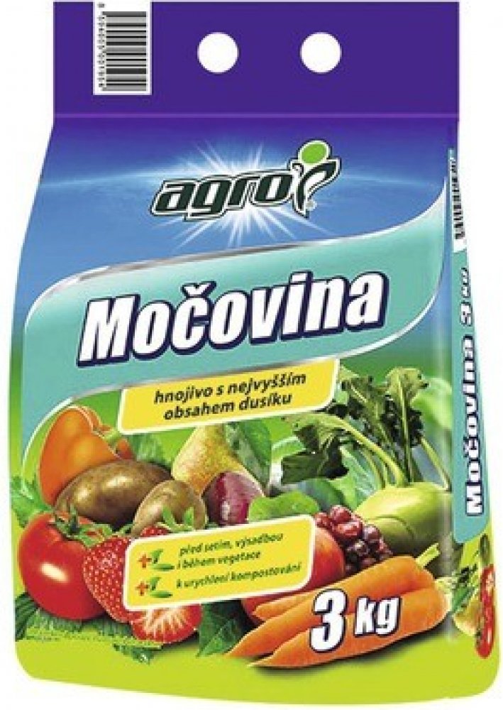 Agro Močovina je univerzální dusíkaté hnojivo s vysokým obsahem dusíku určené ke všem plodinám. Dusíkaté hnojivo se používá k základnímu hnojení před setím a výsadbou a k přihnojování během vegetace. Rovněž se používá k urychlení procesu kompostování v kompostéru nebo volně. Hnojivo Močovina podporuje rychlý růst zelené hmoty.
