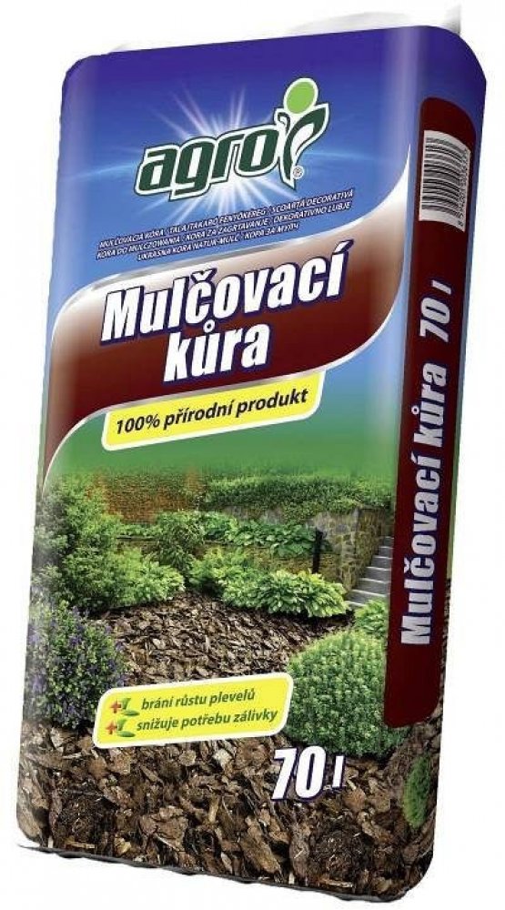 AGRO Mulčovací kůra 70 l je vysoce kvalitní přírodní produkt z jemně drcené kůry. Používá se jako mulčovací vrstva kolem rostlin, která omezuje odpařování vody, zabraňuje přehřívání kořenového systému a minimalizuje růst plevelů. Současně zlepšuje estetický vzhled záhonů a zahradních ploch. Mulčovací kůra je vhodná pro okrasné rostliny, stromy, keře a různé typy záhonů.