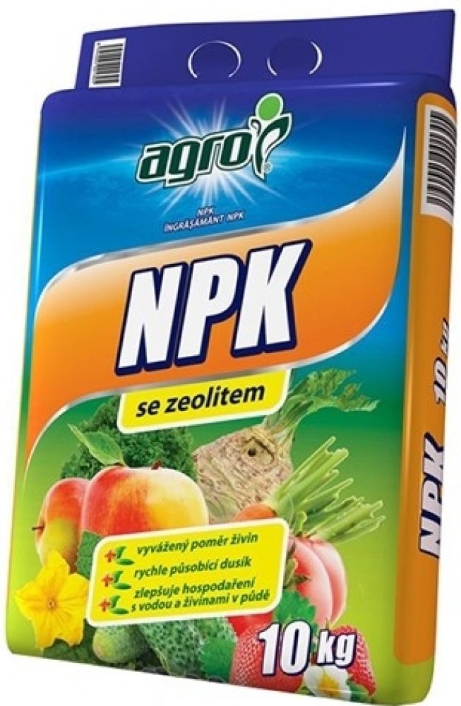 Agro NPK pytel 10 kg je minerální hnojivo vhodné pro základní hnojení před setím či sázením rostlin na jaře i pro přihnojování během vegetace. Hnojivo má vyvážený poměr živin. Vysoký obsah dusíku v rychle působící formě způsobuje rychlejší a lepší start růstu rostlin. Obsahuje přírodní horninu ZEOLIT, který na sebe poutá živiny a následně je pozvolna uvolňuje do půdy pro potřeby rostlin. ZEOLIT ro...