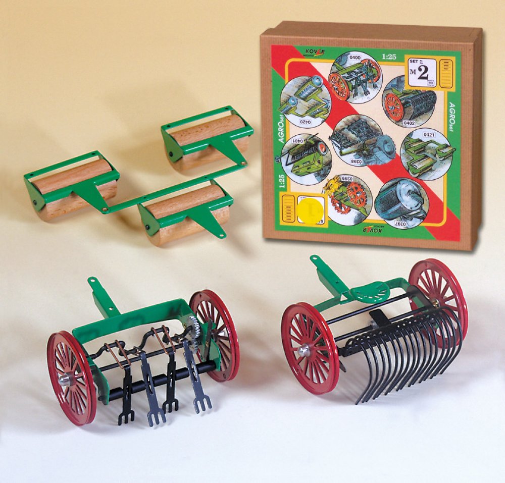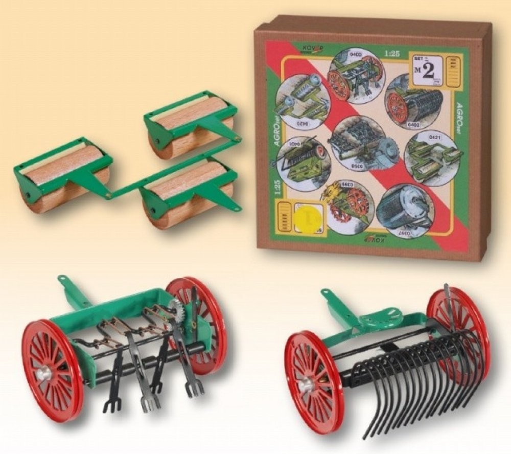 Obsahem Agrosetu M2 jsou: válce, pohrabovadlo a obracečka sena.