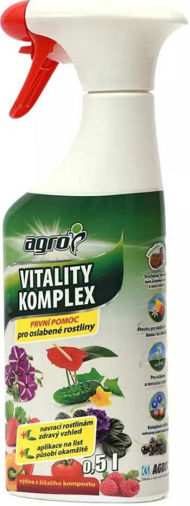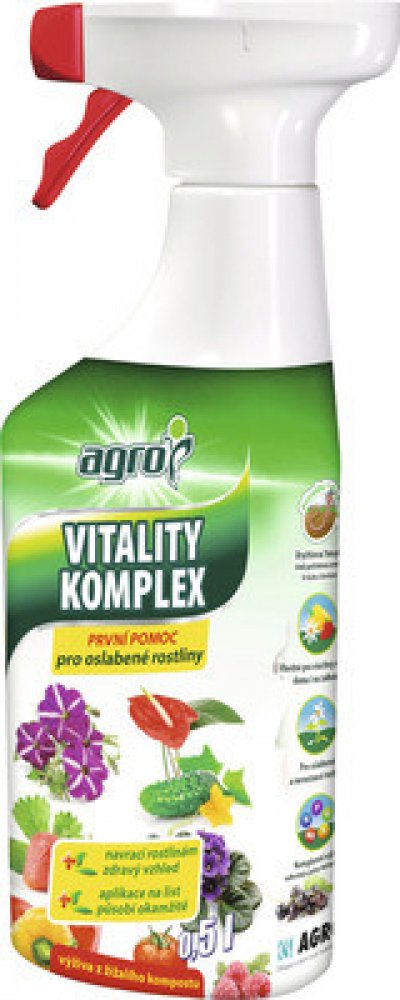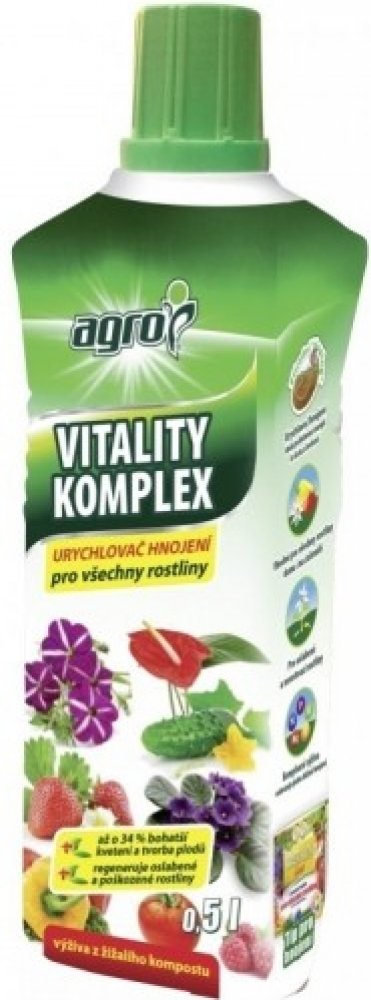 Vitality Komplex podporuje růst rostlin, zvyšuje tvorbu květu, u plodové zeleniny a ovoce příznivě ovlivňuje velikost a chuť plodů a dokonce zvyšuje i obsah vitamínu C. Zvyšuje celkovou vitalitu rostlin a tím přispívá k jejich větší odolnosti proti škůdcům a chorobám. Výborně se hodí pro oživení vzhledu rostlin, které obnoví svůj původní vzhled a začnou vytvářet nové výhonky.