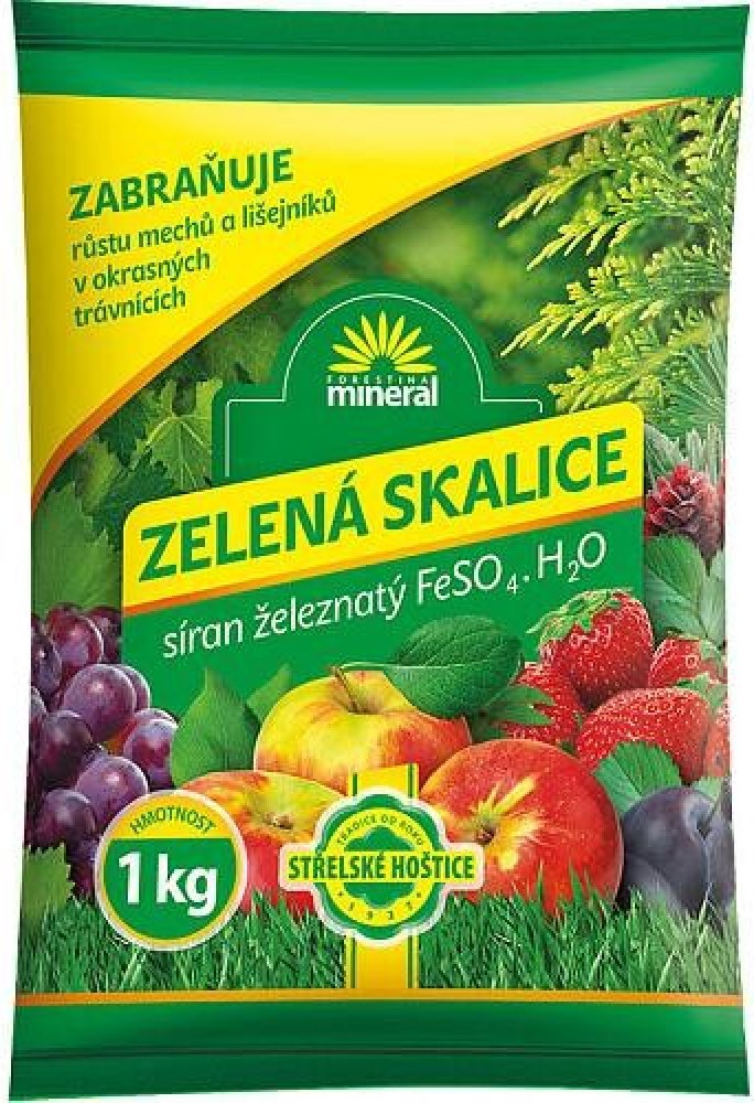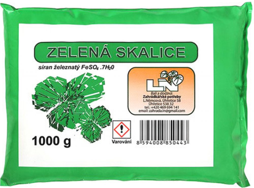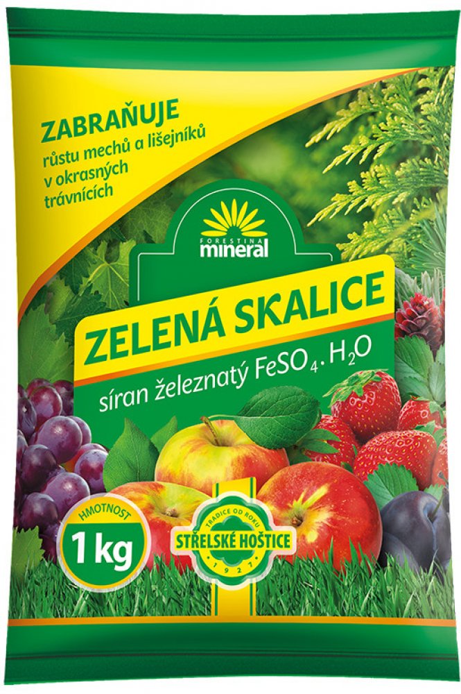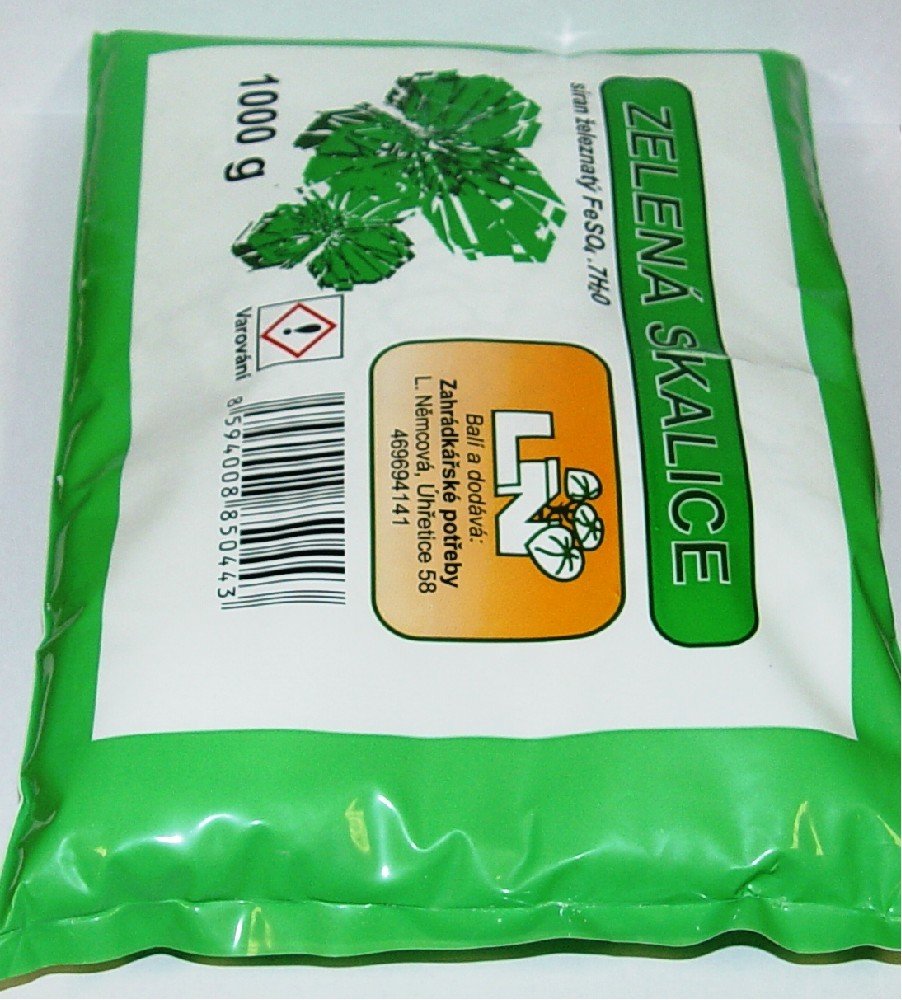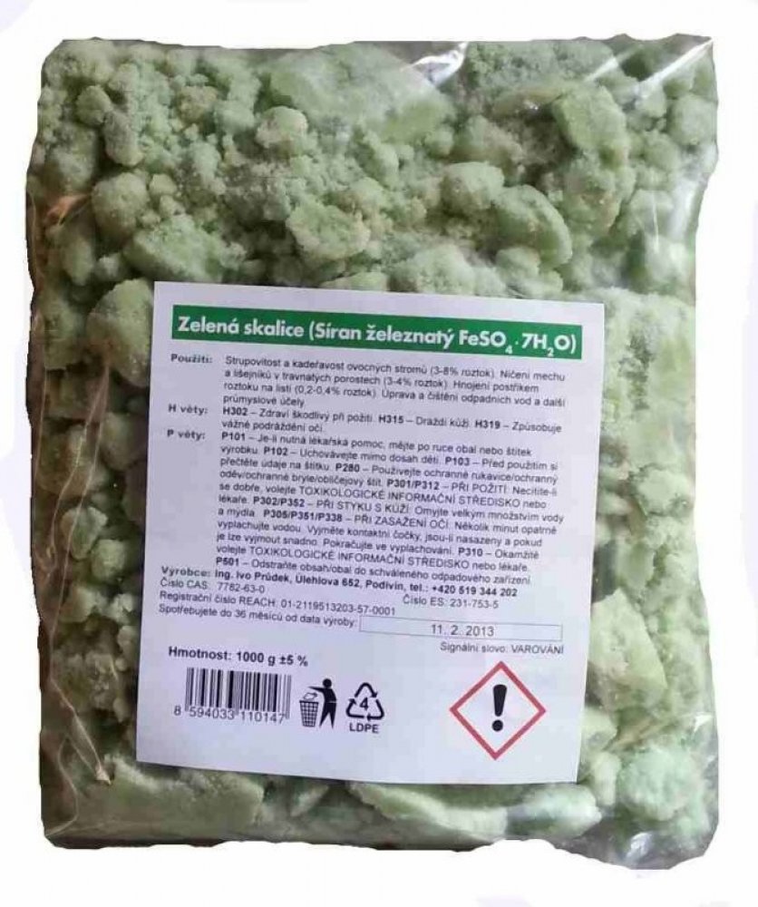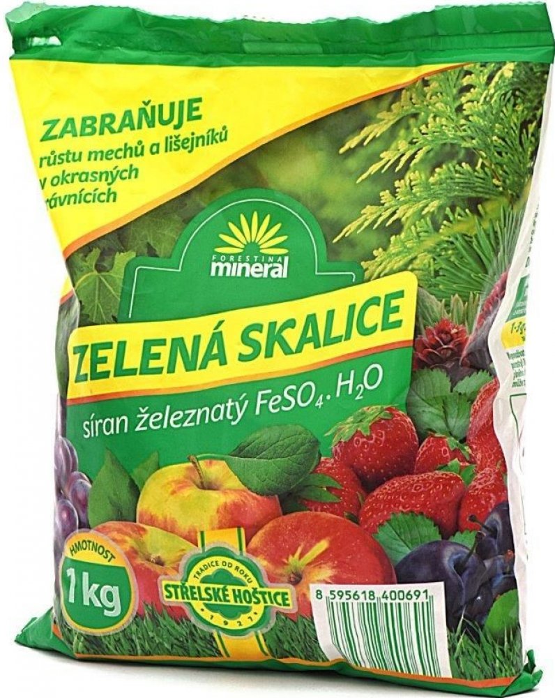 Hnojivo s vysokým obsahem železa pro doplnění železa ve výživě jádrovin nebo pro likvidaci mechů v trávnicích.