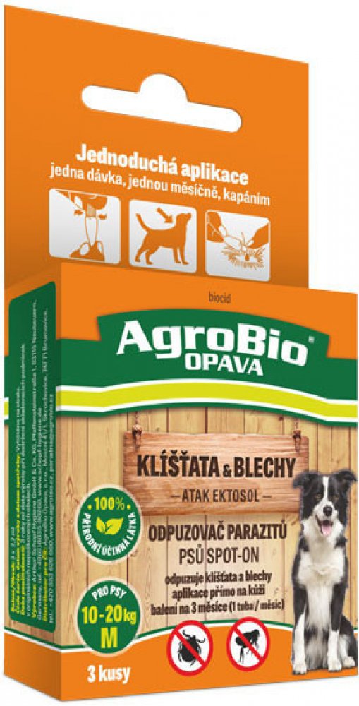 AgroBio Atak Ektosol Odpuzovač parazitů psů SpotOn 3 x 2,2 ml M