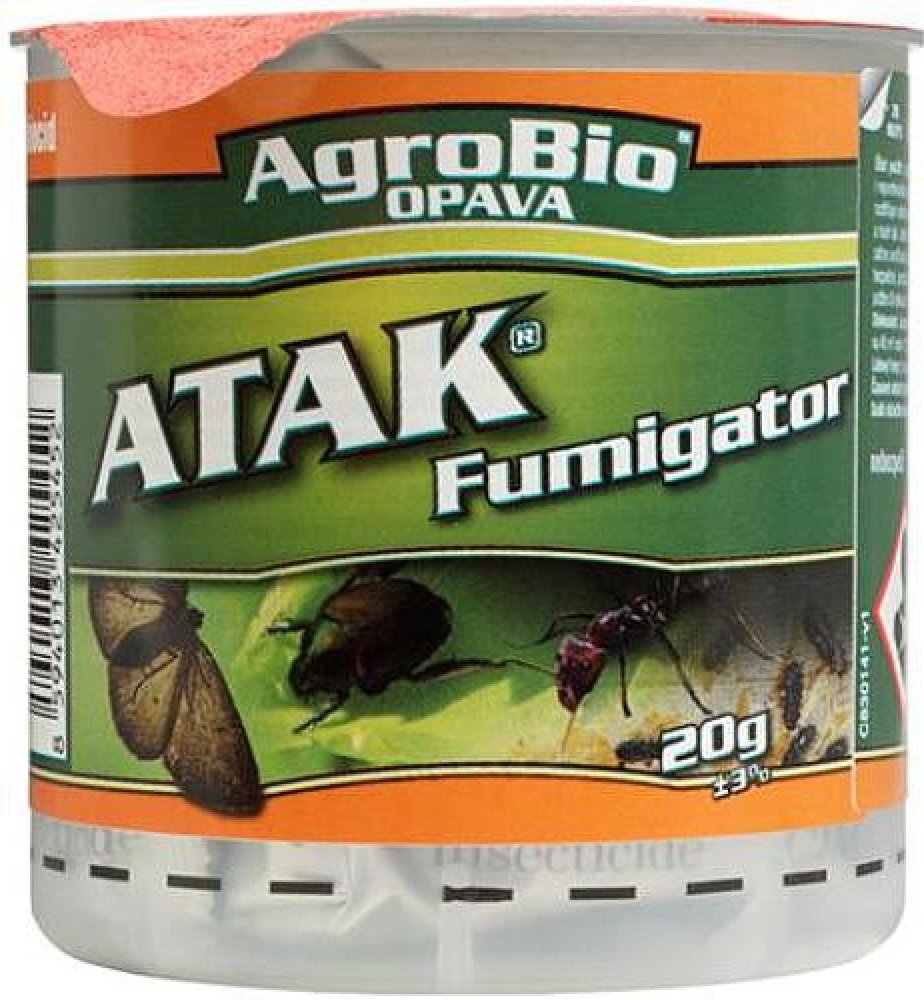 Velké výhody atak fumigatoru jsou jednoduché a bezpečné použití. Přípravek nezpůsobuje požár, neobsahuje hnací plyn a má zpožděné rozptýlení kouře. Vznikající suchý kouř má výbornou penetrační schopnost. Rychlý účinek a vysoká účinnost. Není mastný, nezanechává rezidua ani skvrny. CÍLOVÉ OBJEKTY: Lezoucí hmyz a larvy (šváby, blechy, moli, brouci, pavouci, mravenci a další), Létavý hmyz a larvy (mouchy, komáři, moli, vosy, sršni a další), Prachoví roztoči.