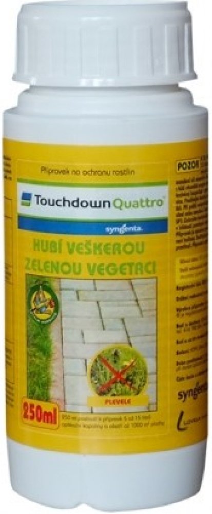 Touchdown Quattro obsahuje glyfosát jako účinnou látku, kterou rostliny přijímají prostřednictvím listů. Tento neselektivní, systémový listový herbicid působí proti široké škále jednoletých i vytrvalých plevelů, jako je pýr plazivý, pcháč oset nebo mléč rolní. Je vhodný pro použití před setím nebo výsadbou, před sklizní nebo na strništi. Po aplikaci na listy aktivně rostoucích plevelů se Touchdown...