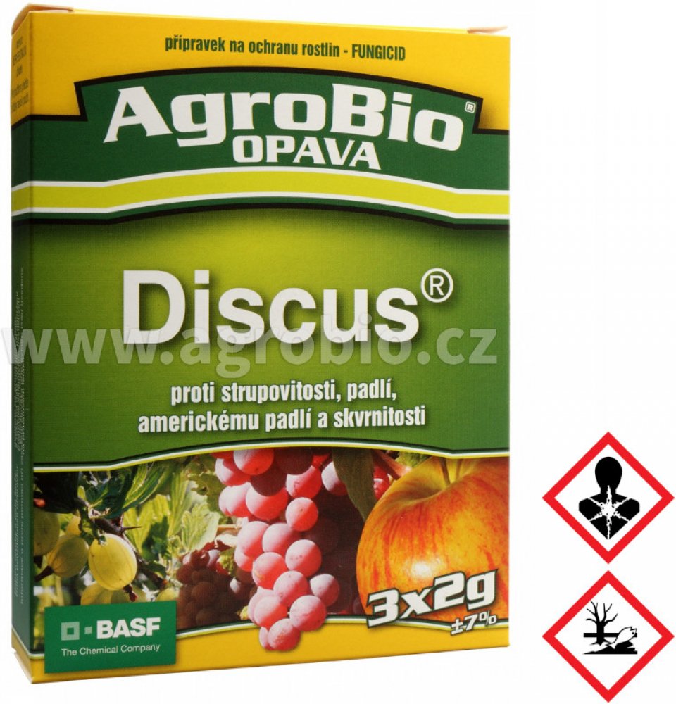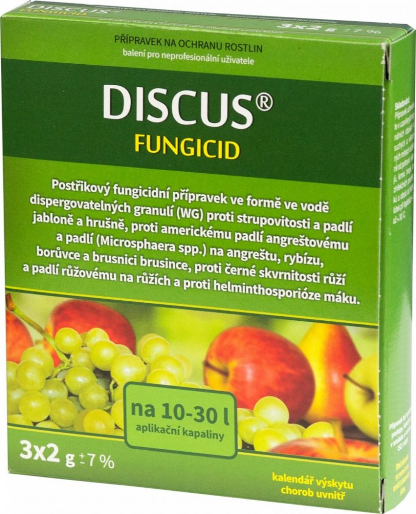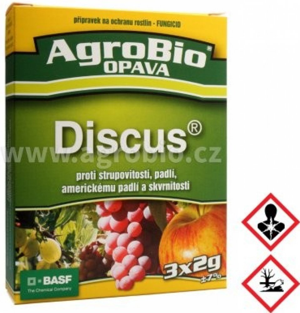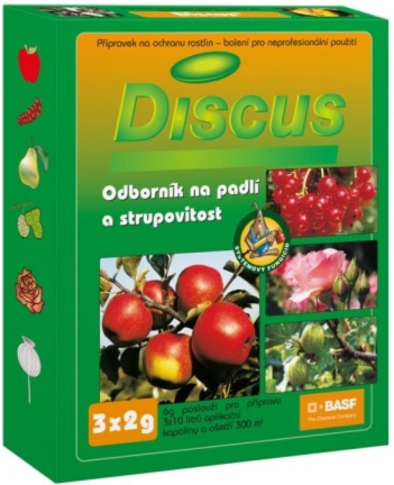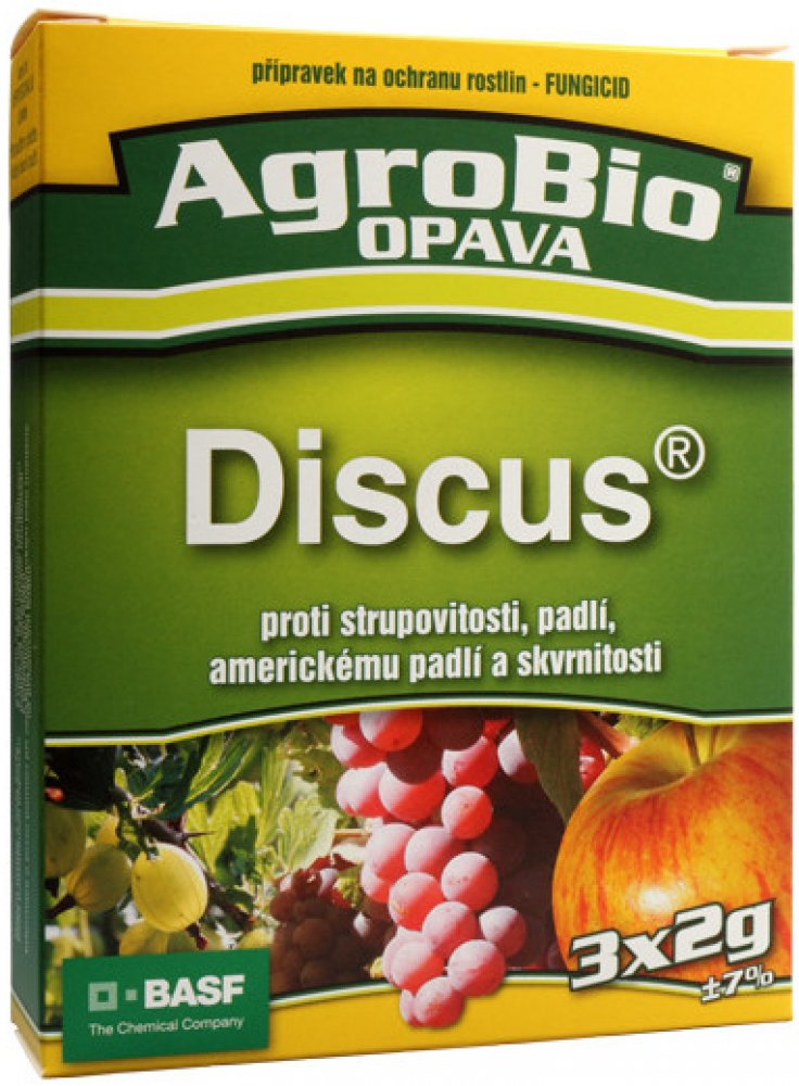 Účinek přípravku Discus je založen na zabránění přenosu elektronů v dýchacím procesu, čímž je zabráněno sporulaci a klíčení spór. V závislosti na škodlivém organismu a termínu aplikace vykazuje protektivní, kurativní a eradikativní účinek. Přípravek je z míst a dopadu rozváděn po povrchu rostliny, takže posléze vytvoří ochrannou vrstvu. Přípravek je plně selektivní v jakékoli růstové fázi.
