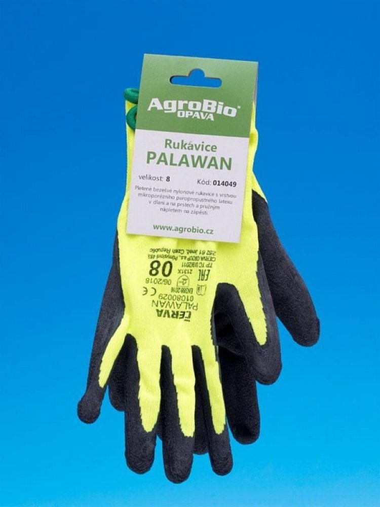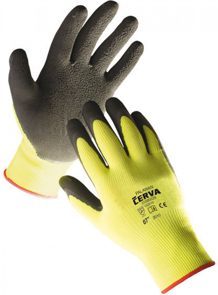 Pletené bezešvé rukavice s vrstvou mikroporézního paropropustného latexu v dlani a na prstech