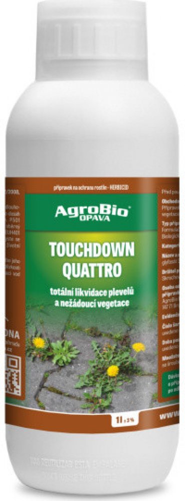Přípravek je klasifikovaný jako nebezpečný pro životní prostředí. Signální slovo: Varování Údaje o nebezpečnosti: Bezpečnostní pokyny: H411 Toxický pro vodní organismy, s dlouhodobými účinky. P102 Uchovávejte mimo dosah dětí. P273 Zabraňte uvolnění do životního prostředí. P501 Odstraňte obsah/obal předáním na sběrný dvůr do části nebezpečného odpadu. EUH 401 Dodržujte pokyny pro používání, abyste se vyvarovali rizik pro lidské zdraví a životní prostředí. Totální herbicid pro hubení plevelů a nežádoucí vegetace. Účinná látka: glyfosát 360 g/l Jak účinkuje? TOUCHDOWN QUATTRO obsahuje účinnou látku glyfosát, která je přijímána listy . Přípravek působí neselektivně jako listový systemický herbicid proti širokému spektru jednoletých a víceletých plevelů včetně pýru plazivého, pcháče osetu a mléče rolního před setím nebo výsadbou, před sklizní nebo na strniště. V rostlinách se rychle šíří. Po aplikaci na list aktivně rostoucích plevelů je TOUCHDOWN QUATTRO translokován do kořenů, stolonů, oddenků, což vede k totálnímu zničení rostliny. Proto je důležité, aby plevele dosáhly dostatečné plochy povrchu listů, zajišťující vstřebání přípravku. Optimální doba pro aplikaci proti vytrvalým plevelům je těsně před nebo na začátku květu. K dosažení dostatečné translokace přípravku TOUCHDOWN QUATTRO do oddenků, je vždy třeba počítat s kultivací nejdříve týden po aplikaci. Uvětšiny vytrvalých plevelů je třeba počkat s kultivací minimálně 7 dní. Při kontaktu s půdou se inaktivuje. Pro jaké rostliny je registrován? cesty mezi záhony nezemědělská půda (chodníky, kolem plotů, antukové hřiště, aj.) půda (příprava před výsevem, výsadbou) réva vinná, ovocné sady (kromě broskvoní) Jak jej použít? postřikem na vzlešlé plevele (je přijímám zelenými částimi rostlin) přípravkem se v plné dávce ošetřuje jednou ročně přípravek nesmí zasáhnout okolní porosty! aplikujte pozemně postřikem nedostatečné vypláchnutí aplikačního zařízení může způsobit poškození následně ošetřovaných rostlin přípravek nesmí zasáhnout okolní porosty (pro které není tento přípravek registrován) Nás tip: všechny aplikační poznámky najdete v záložce POUŽITÍ a přesné dávkování pro váš postřikovač si vypočítejte v naší kalkulačce. Přípravek na ochranu rostlin (pro neprofesionální uživatele). Používejte přípravky na ochranu rostlin bezpečně. Před použitím si vždy přečtěte označení a informace o přípravku.