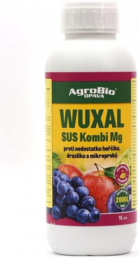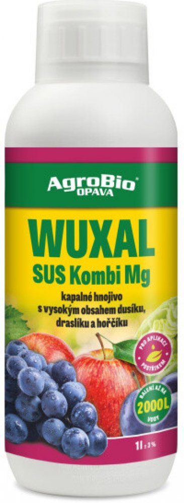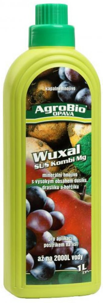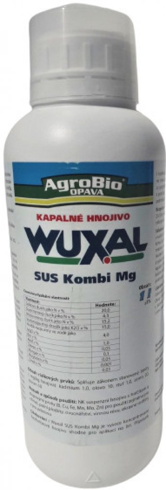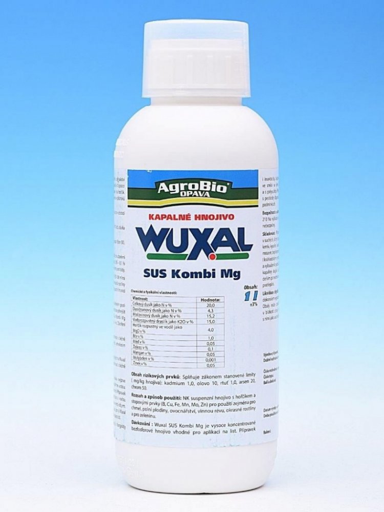 WUXAL Kombi Mg bezfosforové dusíkato draselné suspenzní hnojivo s hořčíkem a stopovými prvky pro postřik na list.Použití zejména ve chmelu, polních plodinách, ovocnářství, ve vinné révě, v okrasných rostlinách a zelenině. Použití preventivní i kurativní, po projevení se příznaků nedostatku hořčíku.