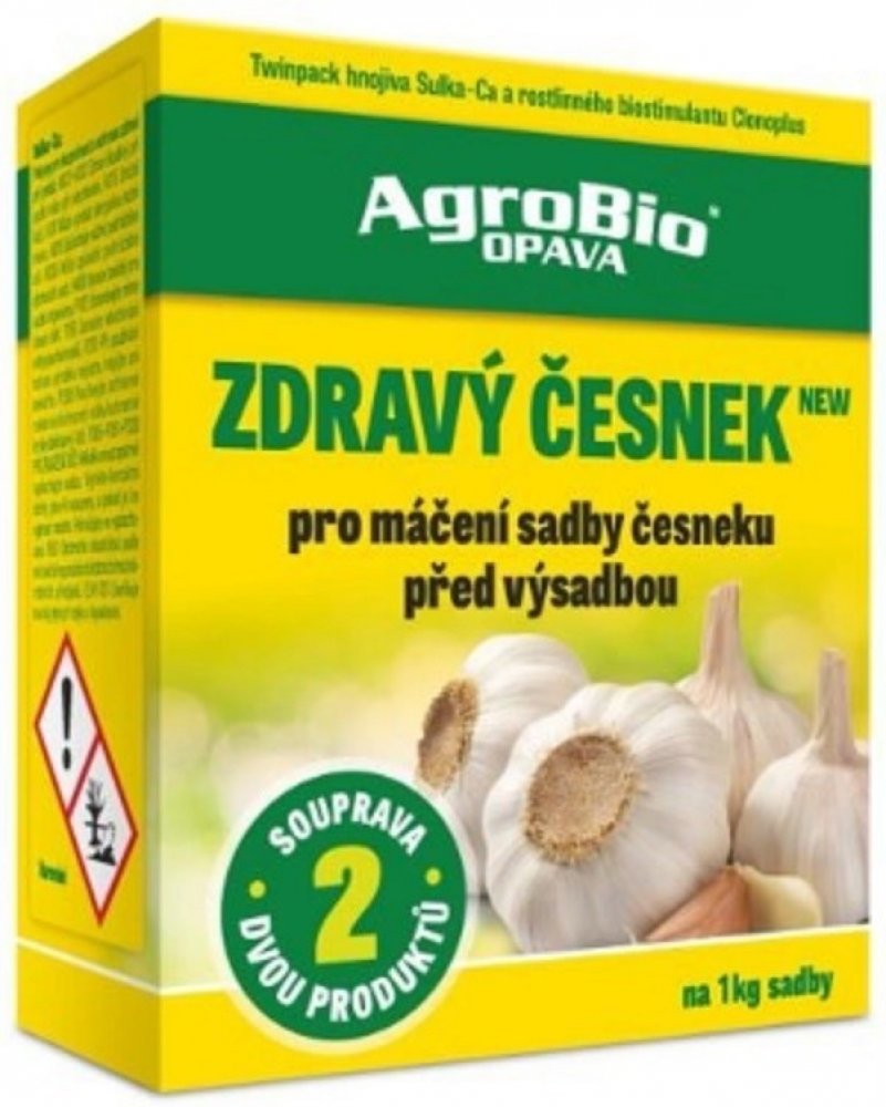 Souprava pomocného přípravku Clonoplus a hnojiva Sulka Extra. Souprava je určena ke hnojení sadby máčením a poprachu stroužků česneku a je schopna rozkládat patogenní houby.