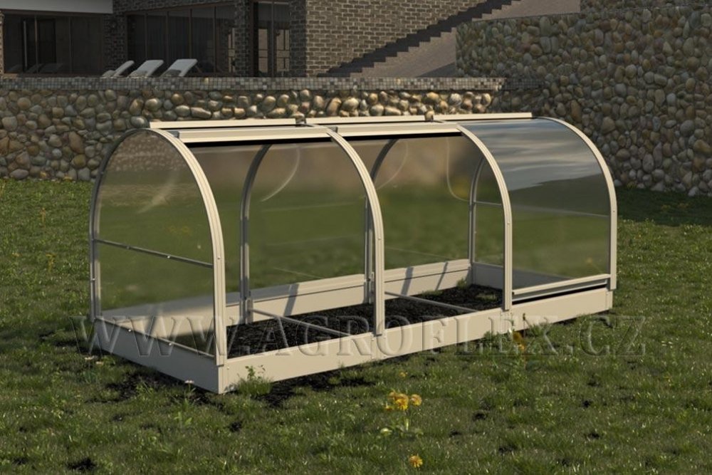 Model má spolehlivý rám vyrobený z pozinkovaného oblouku. Oblouky jsou monolitické a vzdálenost mezi nimi je 1 metr, což v nízké výšce postačuje k zajištění spolehlivosti konstrukce. V roli vnějšího pláště je buněčný polykarbonát, který je upevněn pomocí střešních šroubů. Tato možnost montáže umožňuje provádět bodovou výměnu pokožky, když dojde k lokálnímu poškození, to znamená, že nemusíte vyměňovat polykarbonát v celé oblasti pouzdra. Ideální pro sazení a pěstování rajčat a okurek.[/vc_column_text][vc_separator][vc_column_text text_larger="no"]