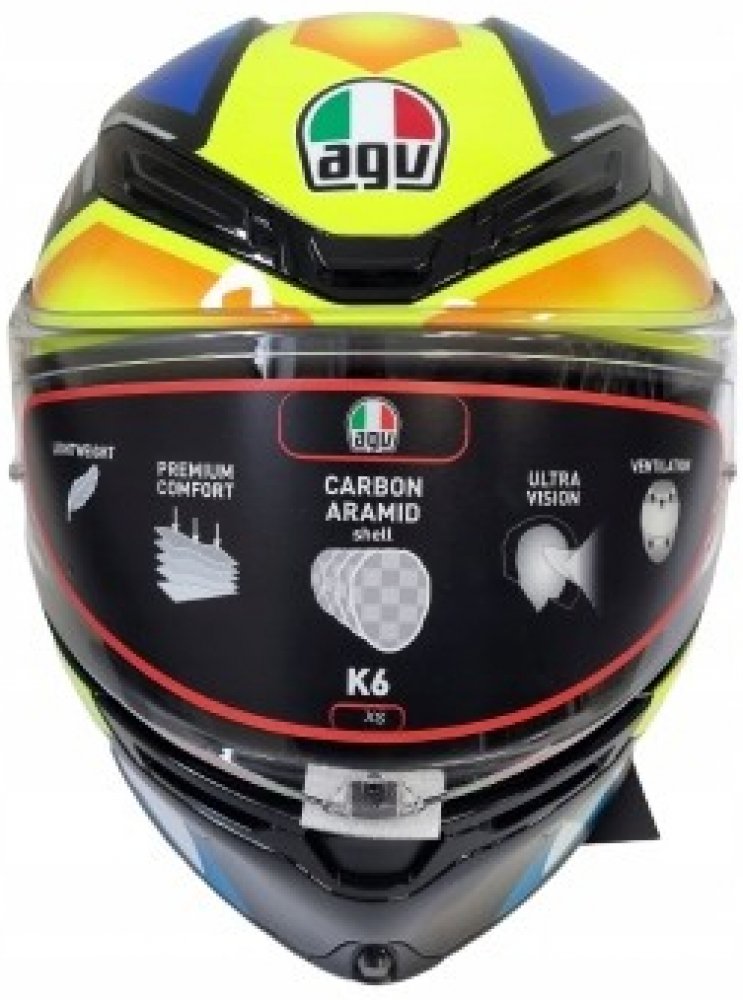 Helma K6 poskytuje ochranu jezdcům, kteří se musí v každé situaci plně projevit, a to díky ochraně na úrovni světového šampionátu. Prémiová skořepina z uhlíkových aramidových vláken a pět hustot EPS nabízejí stejnou ochranu, jakou mají profesionální jezdci MotoGP™. Ochranná kapacita je o 48% vyšší než vyžaduje legislativa.