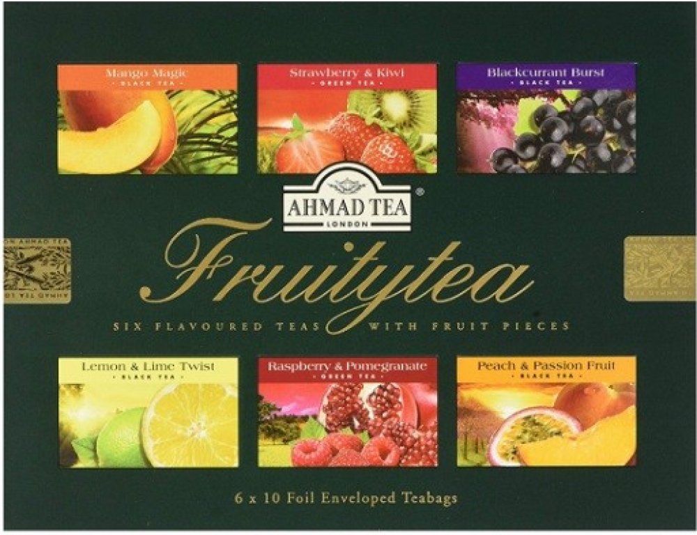 Sada 60 porcovaných černých a zelených čajů ochucených ovocem.