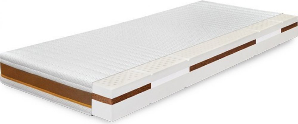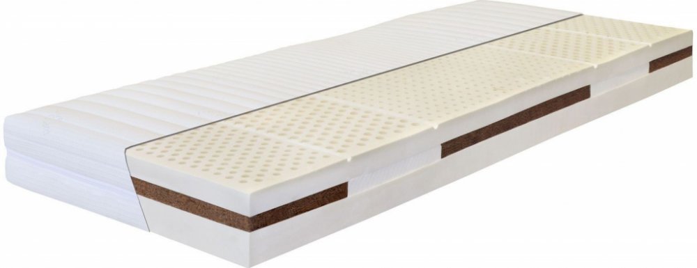 Přizpůsobivá antialergická matrace pro maximální pohodlí. Latexová matrace svou konstrukcí odpovídá rozdílným křivkám celého těla. V nejvíce zatěžovaných oblastech je matrace zpevněna vrstvou kokosovo-latexové desky, která je umístěna v 1/3 výšky jádra. V oblasti ramen a kolen je měkká perfo-latexová deska, která zmírní otlačení těchto partií. Matrace je pro svou extrémní pružnost, vysokou odolnos...