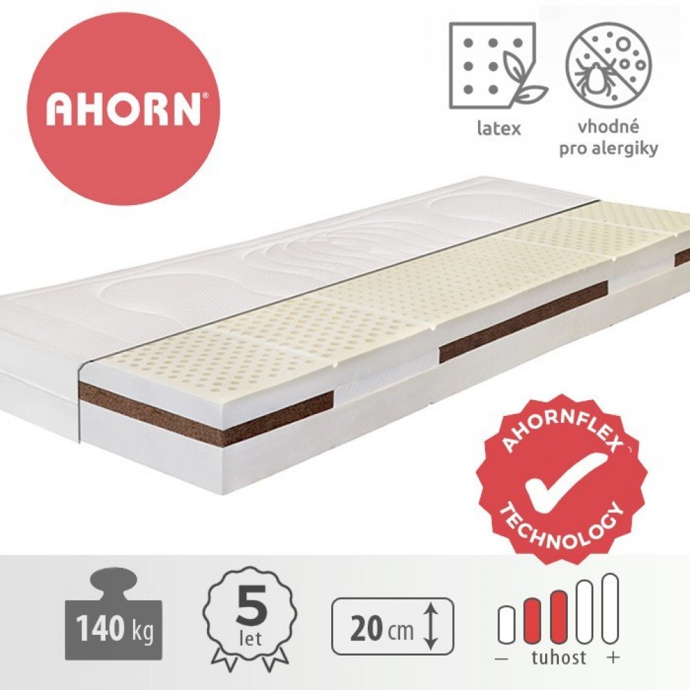 Ahorn pěnové 7 zón 140 kg tuhost 2 - 3 středně měkká / středně tvrdá latexová pěna