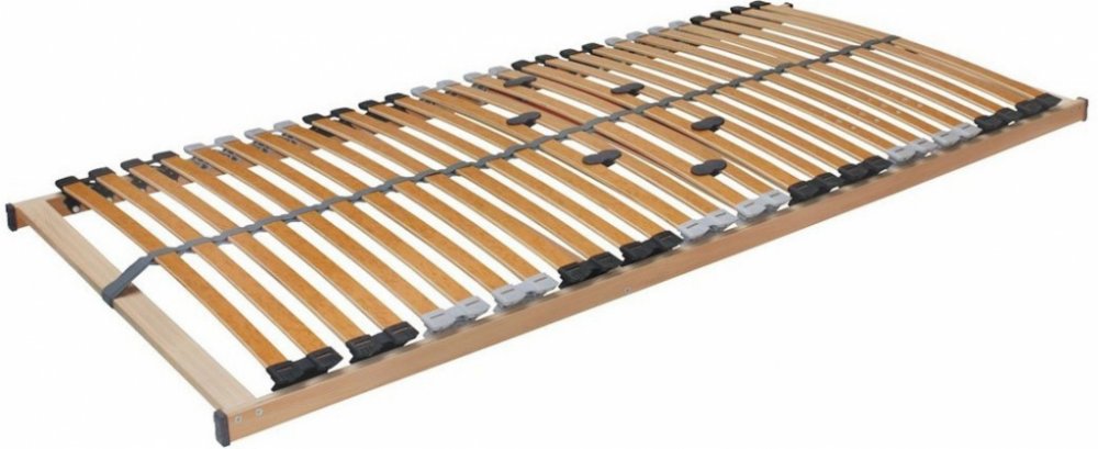 PORTOFLEX - pružný lamelový rošt 120 x 220 cm Postelový rošt Portoflex představuje pohodlný a odolný rošt s pouzdry uloženými nad bočnicí pro vyšší odolnost proti prudkému zatížení. Pružné lamely v 7 anatomických zónách uložené ve dvojitých kaučukových pouzdrech se natáčejí a reagují po celé délce. V těchto pouzdrech jsou lamely uloženy nad rámem roštu, to znamená, že rošt pruží i na kraji a celko...