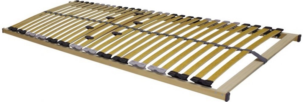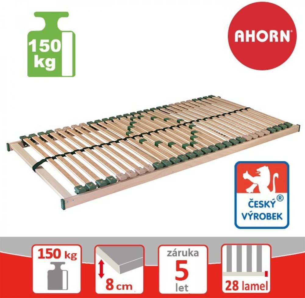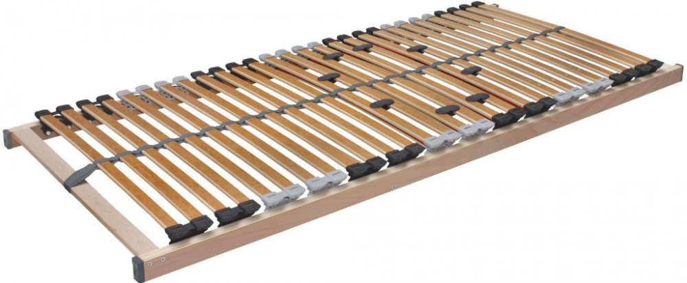 Pohodlný a odolný rošt vydrží zátěž až 150 kg. Zesílená konstrukce, silnější lamely a vyšší počet bederních výztuh zajistí potřebnou stabilitu lůžka. Pružné lamely v 7 anatomických zónách uložené nad bočnicí ve dvojitých kaučukových pouzdrech reagují po celé své délce. Změkčení v ramenou zajistí oporu páteře při spánku na boku. Středový popruh zlepšuje stabilitu a foliovaný povrch lamel usnadní údržbu roštu. Je vhodný pro pěnové a latexové matrace.