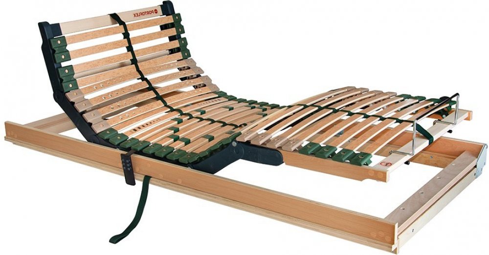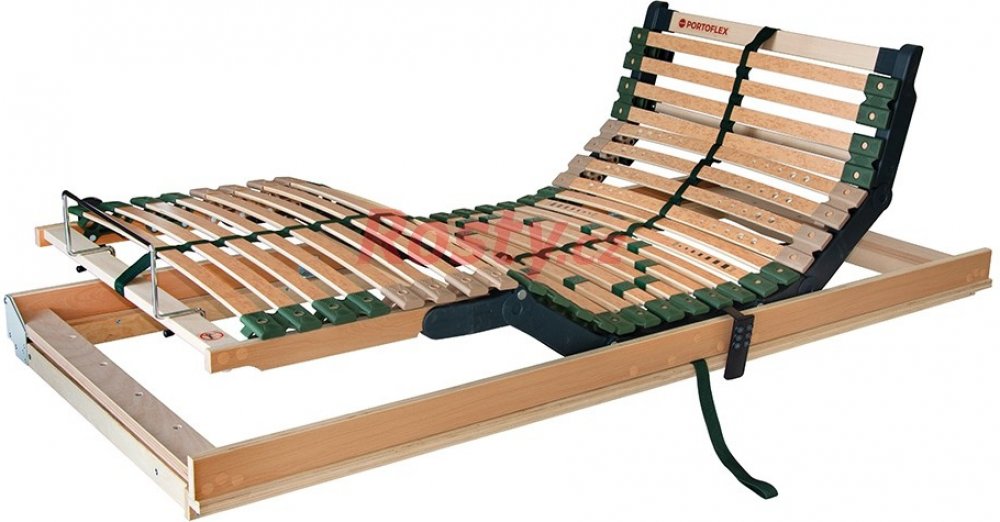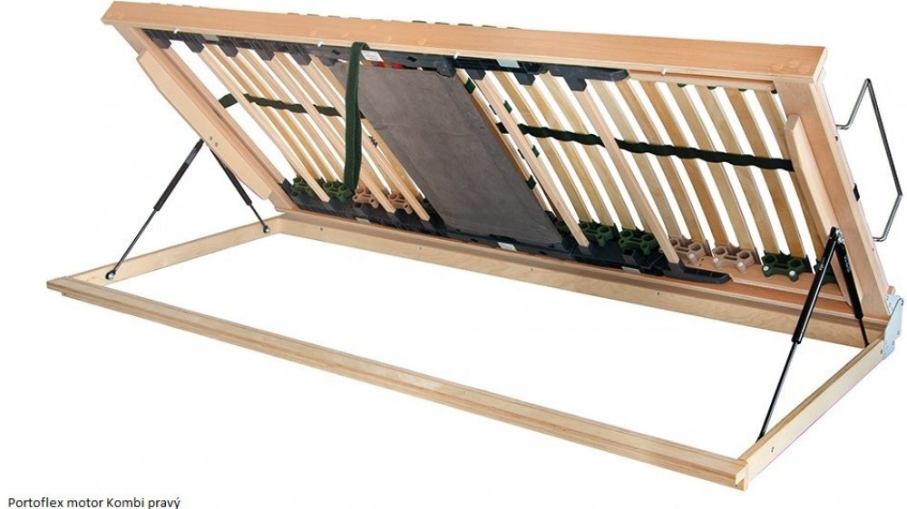 PORTOFLEX MOTOR kombi P PRAVÝ - motorový lamelový rošt s výklopem a plochým motorem FLAT 90 x 200 cm Postelový rošt Portoflex Motor kombi P s bočním výklopem představuje pohodlný a odolný rošt s nosností 130 kg, s polohováním pomocí 2 nezávislých motorů pro oblast nohou a hlavy, v levé nebo pravé variantě: extra ploché provedení s motorem uloženým v konstrukci rámu roštu umožňuje plné využití úlož...