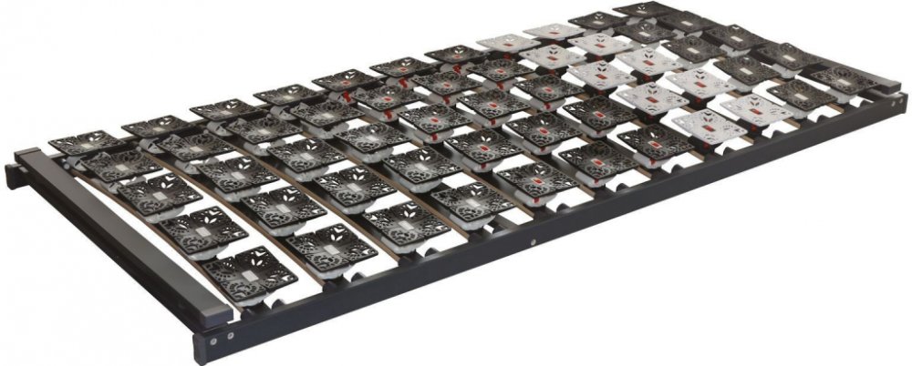 VARION - segmentový postelový rošt 90 x 200 cm Lehací plochu postelového roštu VARION tvoří výkyvné talíře, které podepírají tělo v každém bodu zvlášť, rovnoměrně reagují na zátěž a přizpůsobí se jakýmkoliv tělesným proporcím. Talíře se pohybují ve všech směrech, rovnoměrně pruží na kraji i uprostřed lůžka.