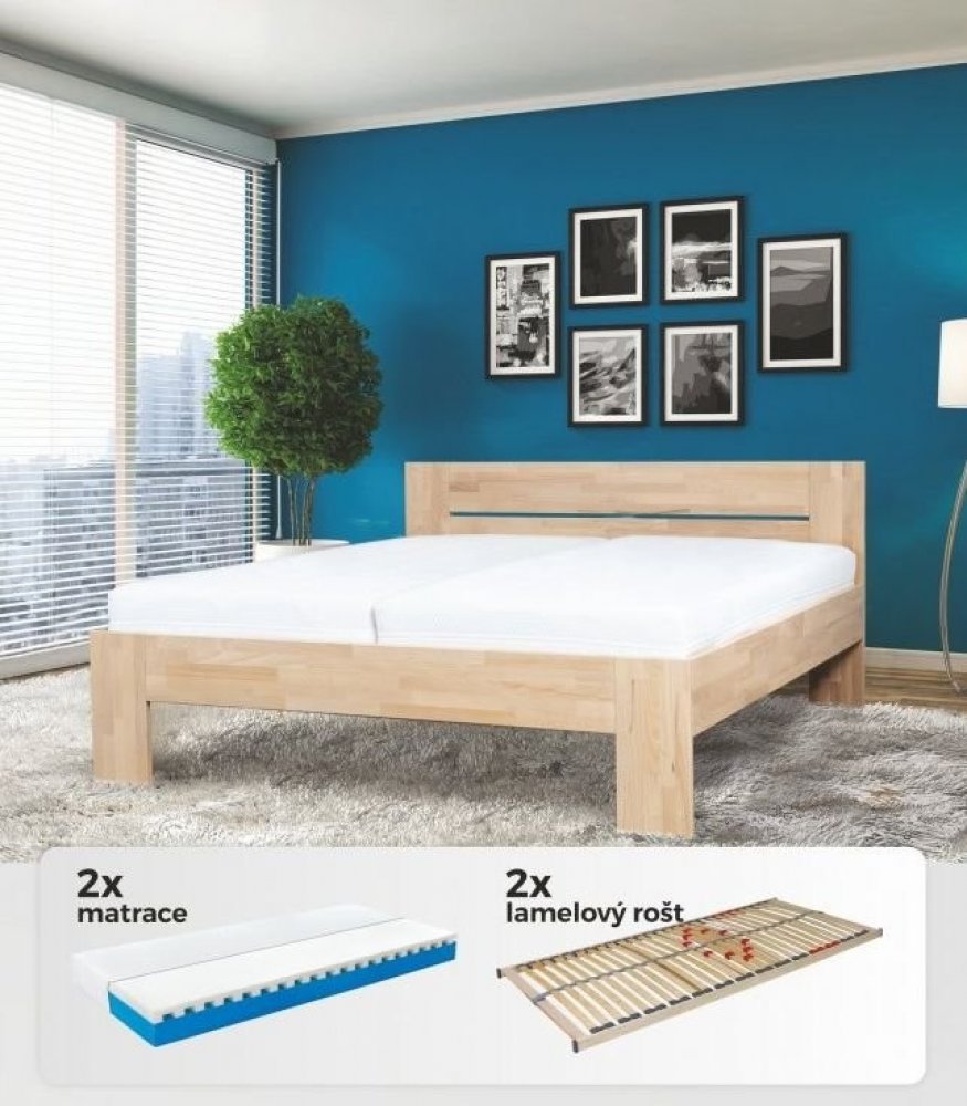 AKCE - Vzhledově velmi jemná, ale přitom výrazně pevná a stabilní manželská postel VENTO se zaoblenými hranami patří díky akci k velmi oblíbeným typům postelí. V ceně postele je započítána molitanová matrace Tanza a rošt Primaflex z dílny stejného výrobce. Materiálově je postel vyráběna z bukové napojované spárovky. Postel je typická tvarovými spoji, tzn., že jednotlivé dílce postele jsou profilov...