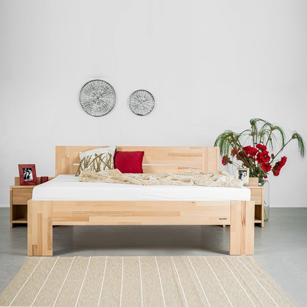 AKCE - Vzhledově velmi jemná, ale přitom výrazně pevná a stabilní manželská postel VENTO se zaoblenými hranami patří díky akci k velmi oblíbeným typům postelí. V ceně postele je započítána molitanová matrace Tanza a rošt Primaflex z dílny stejného výrobce. Materiálově je postel vyráběna z bukové napojované spárovky. Postel je typická tvarovými spoji, tzn., že jednotlivé dílce postele jsou profilované a precizně do sebe zapadají. Pro vyšší stabilitu manželské postele je dodávána se střednicí a středovou nohou. Spaní na této posteli je i díky matraci a lamelovému roštu velmi příjemné a pohodlné. Výhodou tohoto lůžka je možnost přenastavování výšky uložení roštu. Bukové dřevo je lakováno transparentním lakem. Kování s povrchovou úpravou proti korozi. Materiál postele: buková napojovaná spárovka - tl. 25 mm Rozměry manželské postele: ložná plocha lůžka: 180 x 200 cm celkové vnější rozměry (š x d): 185 x 205 cm výška uložení roštu od země: 275 - 350 mm (4 pozice) výška čela: hlavová část 88,5 cm horní hrana bočnice: 45,5 cm. Dodáváno – v demontovaném stavu. Podrobný návod výrobce přiložen. Dodáváno včetně středové příčky a spojovacího materiálu. Český výrobce. Krátký video návod jak nastavit tuhost roštu do postele zde.