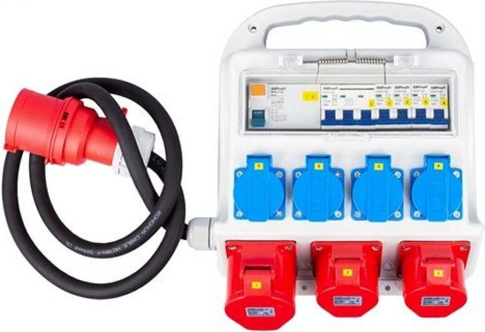 Rozvodná skříň má kabel se vstupem 32A 5P o délce 140 cm. Dále má 7 výstupů, 4 zásuvky 16A, 2 zásuvky 16A 5P a zásuvku 32A 5P.