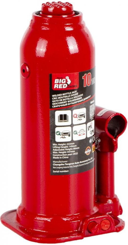 Pístový zvedák (panenka) s nosností 10 tun. Základní výška v zataženém stavu je 195 mm. Díky napumpování pístu můžete břemeno zdvihnout až do výšky 315 mm. Můžete si pomoci vytočením závitu patky a zvýšit rozsah zdvihu ze základní výšky 255 mm (základní výška + 60 mm šroubování) až do max zdvihu 375 mm.