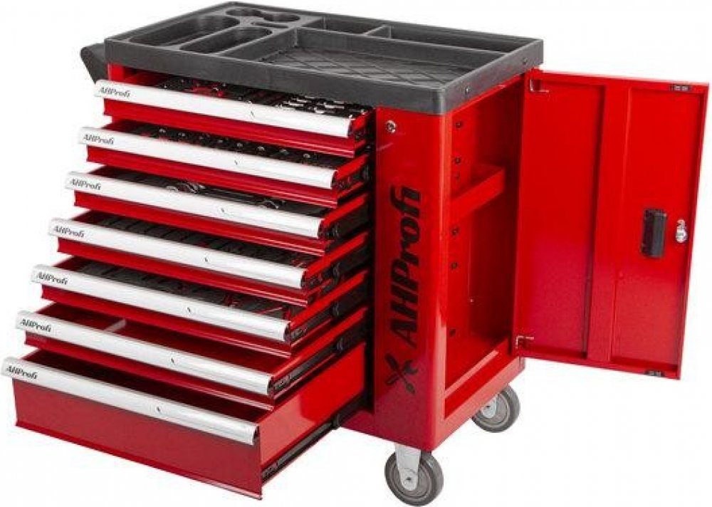Vozík obsahuje 7 zásuvek vyplněných 249 ks ručního nářadí.