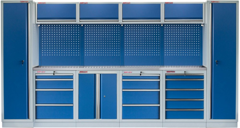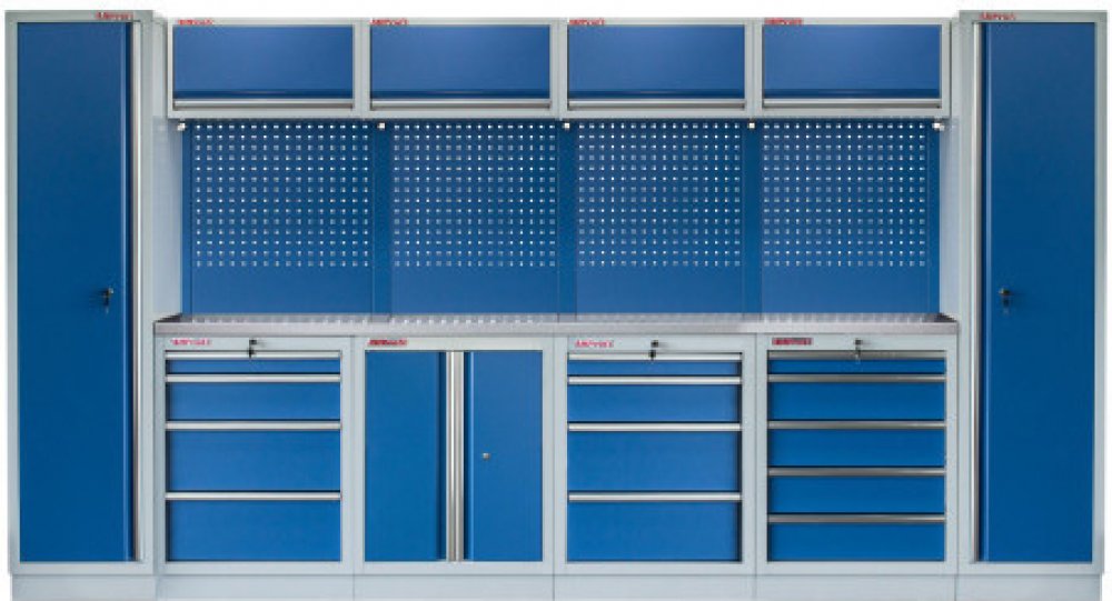 Sestava nábytku v sobě skrývá dostatečné množství úložného prostoru pro vaše nářadí, autotechniku i dílenské vybavení. V kombinaci s bytelnou pracovní deskou získáte multifunkční stěnu, se kterou vám půjde práce od ruky ve všech směrech.