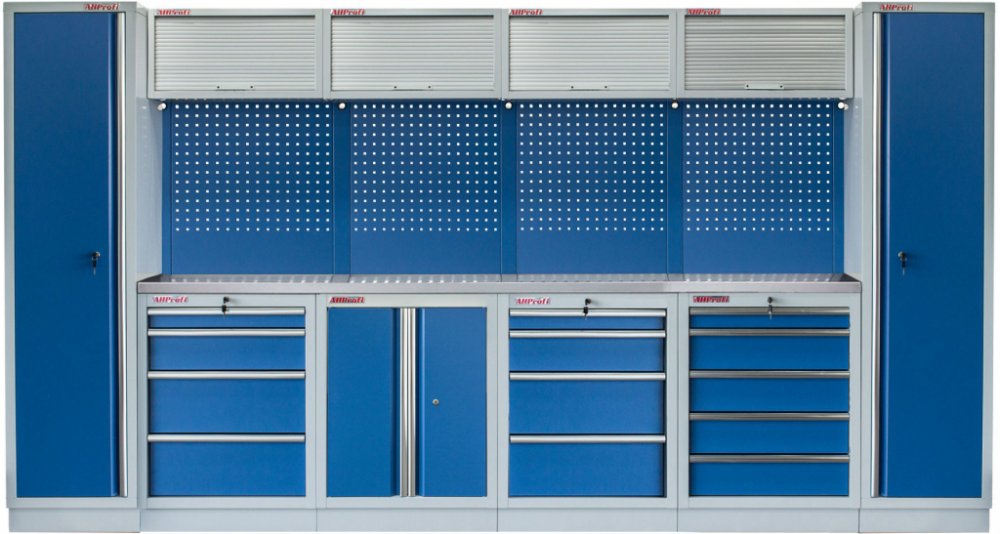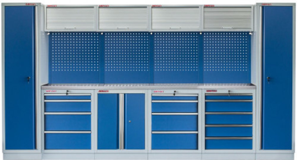 Sestava nábytku v sobě skrývá dostatečné množství úložného prostoru pro vaše nářadí, autotechniku i dílenské vybavení. V kombinaci s bytelnou pracovní deskou získáte multifunkční stěnu, se kterou vám půjde práce od ruky ve všech směrech.