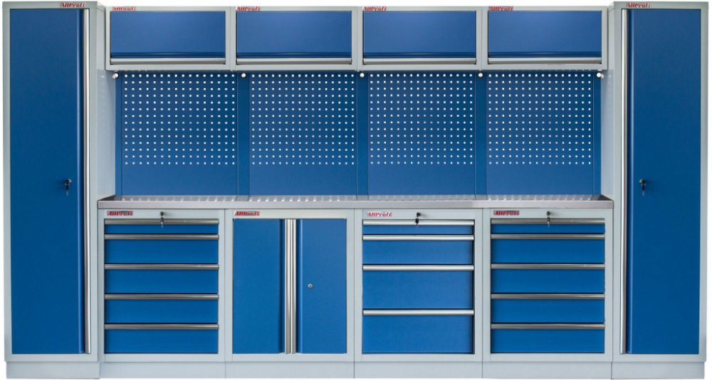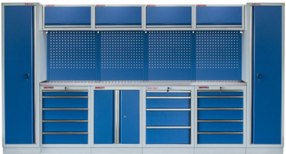 Sestava nábytku v sobě skrývá dostatečné množství úložného prostoru pro vaše nářadí, autotechniku i dílenské vybavení. V kombinaci s bytelnou pracovní deskou získáte multifunkční stěnu, se kterou vám půjde práce od ruky ve všech směrech.