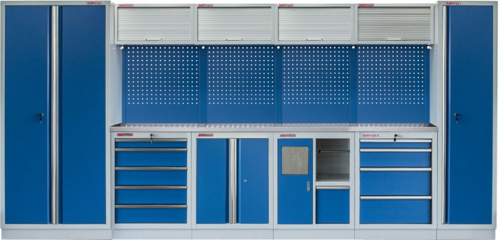 Spodní a vysoké skříňky jsou uzamykatelné. Ať už plánujete sestavu do domácnosti nebo do práce, vaše nářadí bude v bezpečí před nezvanými hosty.