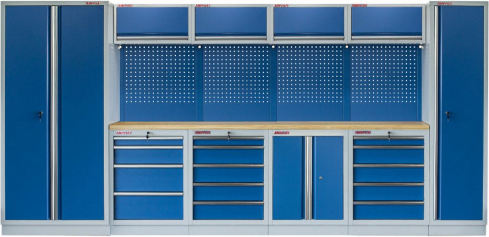 Sestava nábytku v sobě skrývá dostatečné množství úložného prostoru pro vaše nářadí, autotechniku i dílenské vybavení. V kombinaci s bytelnou pracovní deskou získáte multifunkční stěnu, se kterou vám půjde práce od ruky ve všech směrech.