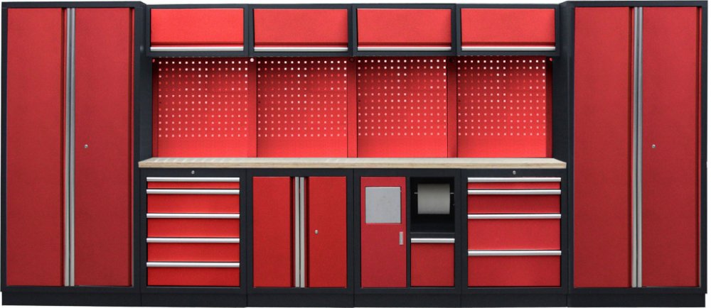 Sestava nábytku v sobě skrývá dostatečné množství úložného prostoru pro vaše nářadí, autotechniku i dílenské vybavení. V kombinaci s bytelnou pracovní deskou získáte multifunkční stěnu, se kterou vám půjde práce od ruky ve všech směrech.