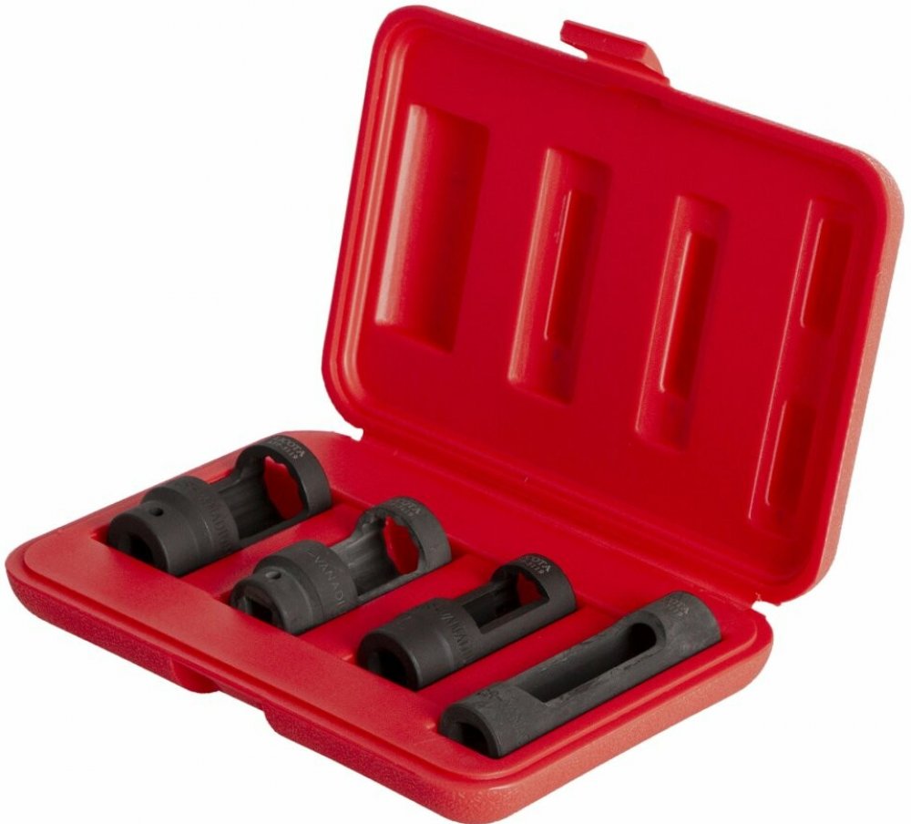 Nástrčné klíče na vstřikyProfesionální nástrčné klíče pro montáž a demontáž vstřikovačů u dieselových motorů. Klíče jsou vyrobeny z vysoce kvalitní oceli a zakončeny čtyřhranem 1/2". Sada obsahuje 4 nástrčné klíče:22mm x 108mm22mm x 80 mm27mm x 80mm28mm x 78mm