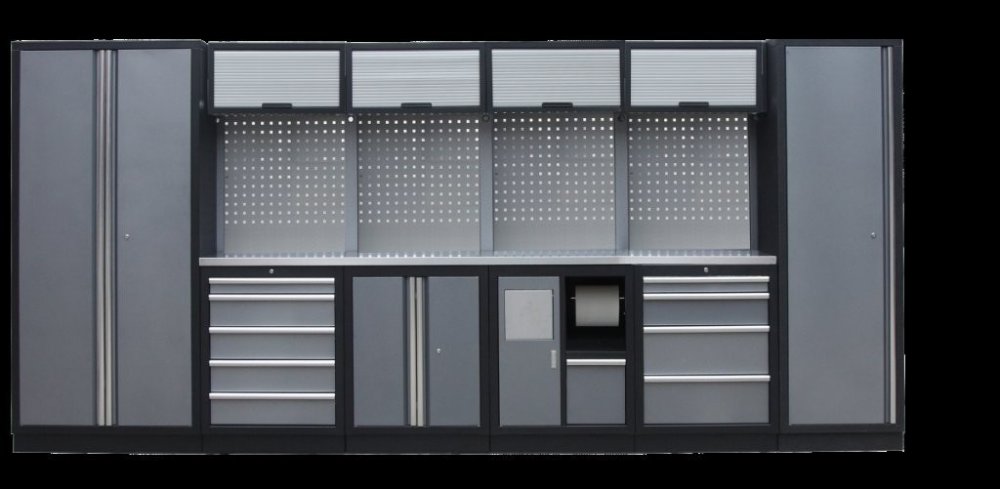 Sestava nábytku v sobě skrývá dostatečné množství úložného prostoru pro vaše nářadí, autotechniku i dílenské vybavení. V kombinaci s bytelnou pracovní deskou získáte multifunkční stěnu, se kterou vám půjde práce od ruky ve všech směrech.