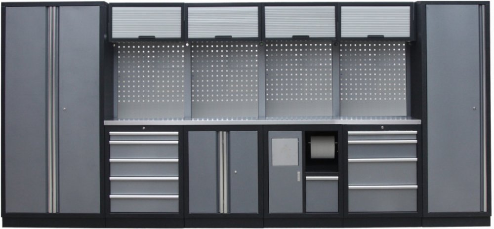 Spodní a vysoké skříňky jsou uzamykatelné. Ať už plánujete sestavu do domácnosti nebo do práce, vaše nářadí bude v bezpečí před nezvanými hosty.